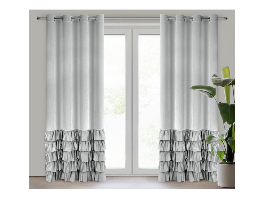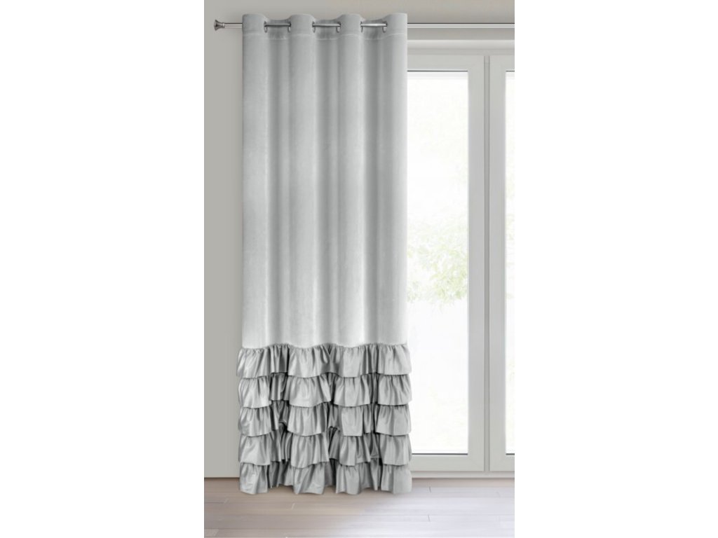 Zasłona gotowa welwetowa z falbanami od dołu szerokość: 140 cm, długość: 250 cm, kolor: STŘÍBRNÝ, Gramatura: 200 GSM, Skład: 100% poliesterDoplňkové parametry