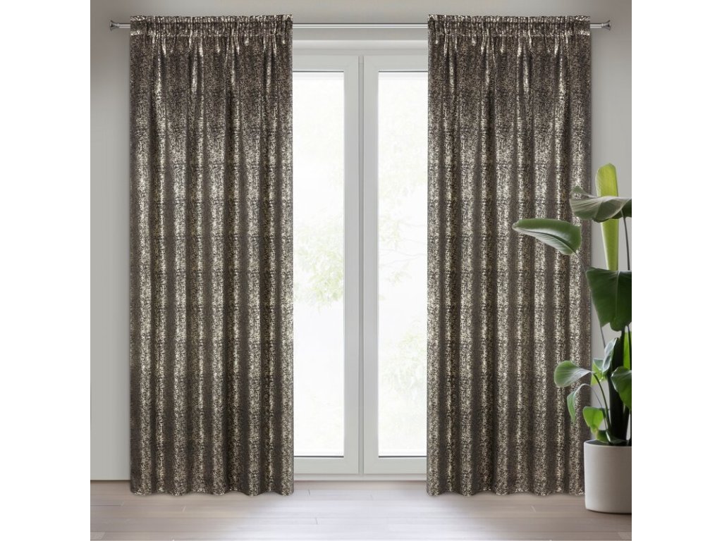 Zasłona zaciemniająca ze SVĚTLE ZLATÝm nadrukiem szerokość: 135 cm, długość: 270 cm, kolor: ČERNÝ, Gramatura: 230 GSM, Skład: 100% poliesterDoplňkové parametry