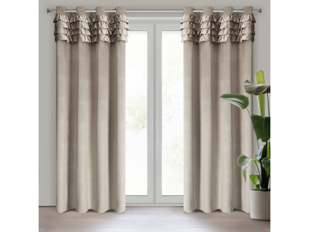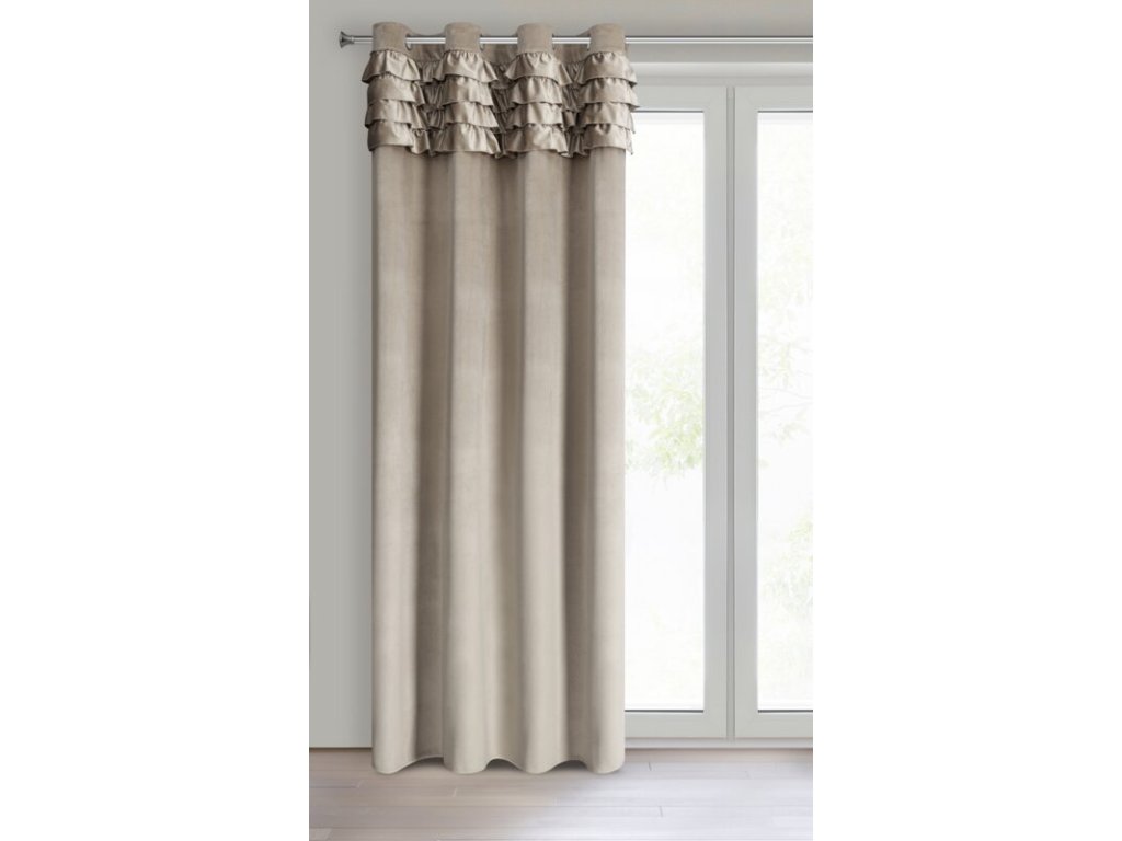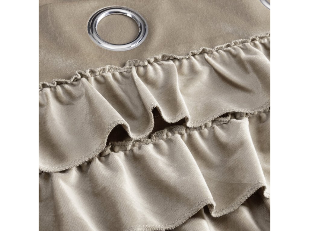 Zasłona welwetowa z falbanami szerokość: 140 cm, długość: 250 cm, kolor: BÉŽOVÝ, Gramatura: 200 GSM, Skład: 100% poliesterDoplňkové parametry
