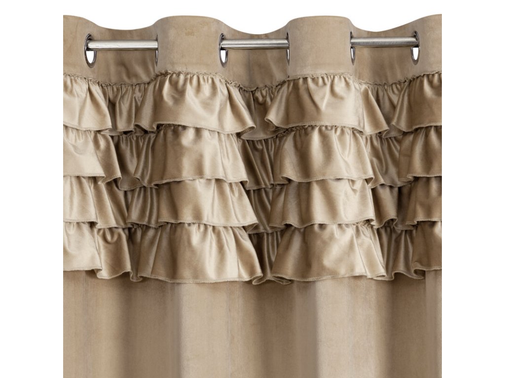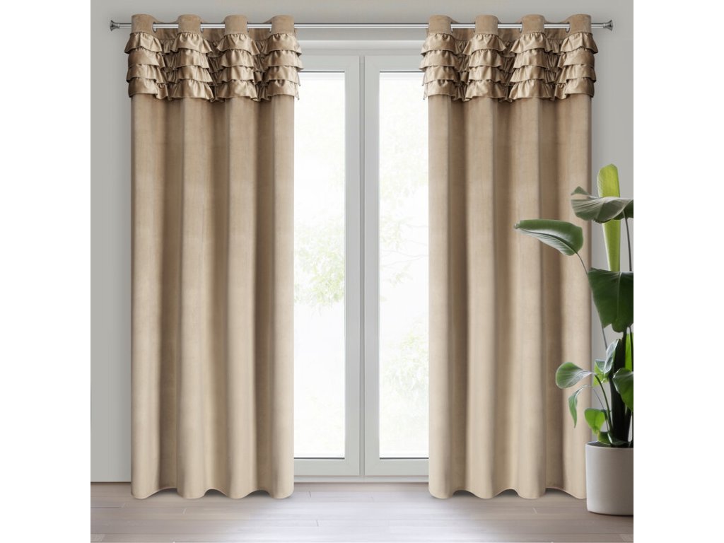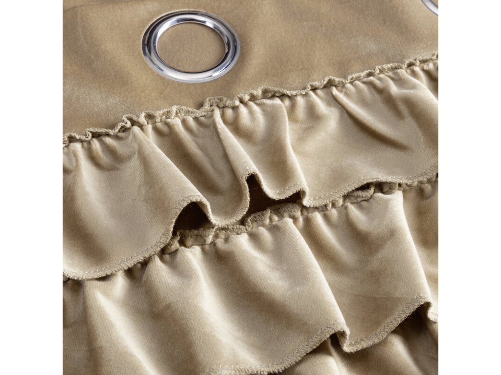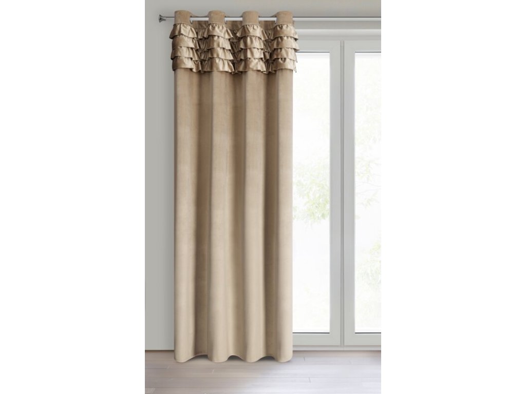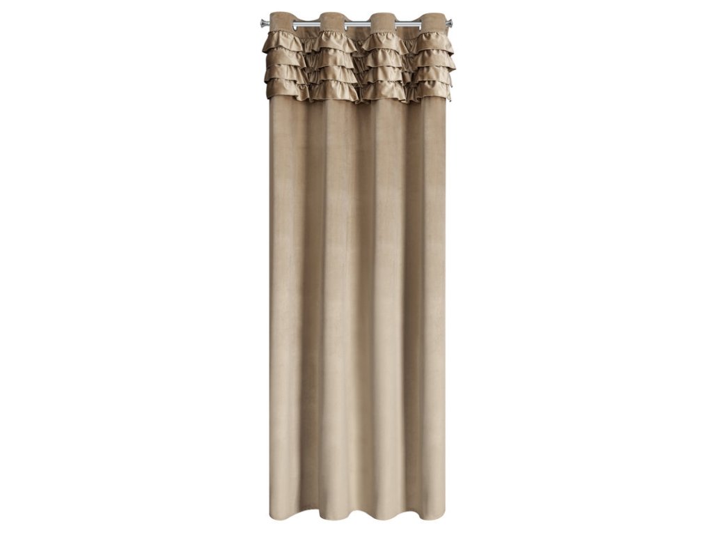 Zasłona welwetowa z falbanami szerokość: 140 cm, długość: 250 cm, kolor: TMAVĚ BÉŽOVÝ, Gramatura: 200 GSM, Skład: 100% poliesterDoplňkové parametry