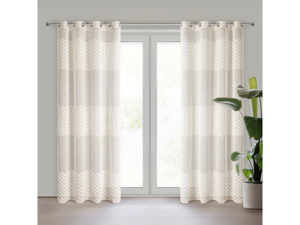 Zasłona gotowa zdobiona geometryczną aplikacją szerokość: 140 cm, długość: 250 cm, kolor: BÉŽOVÝ, Gramatura: 80 GSM, Skład: 100% poliesterDoplňkové parametry