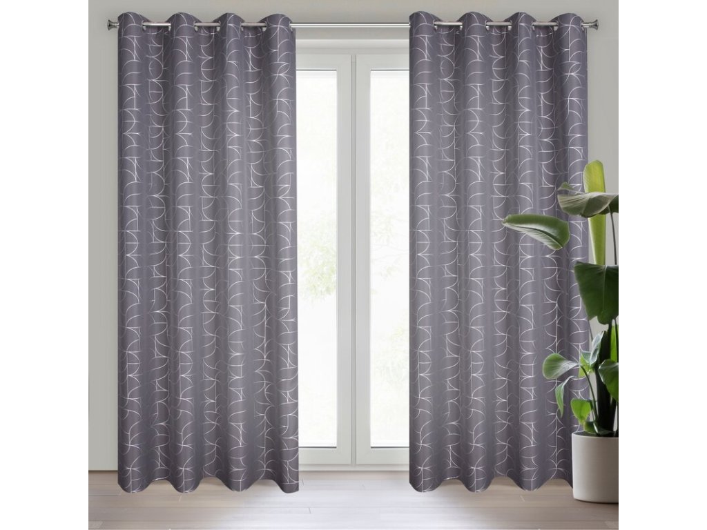 Zasłona gotowa z błyszczącym nadrukiem geometrycznym szerokość: 140 cm, długość: 250 cm, kolor: GRAFITOVÝ, Gramatura: 140 GSM, Skład: 100% poliesterDoplňkové parametry