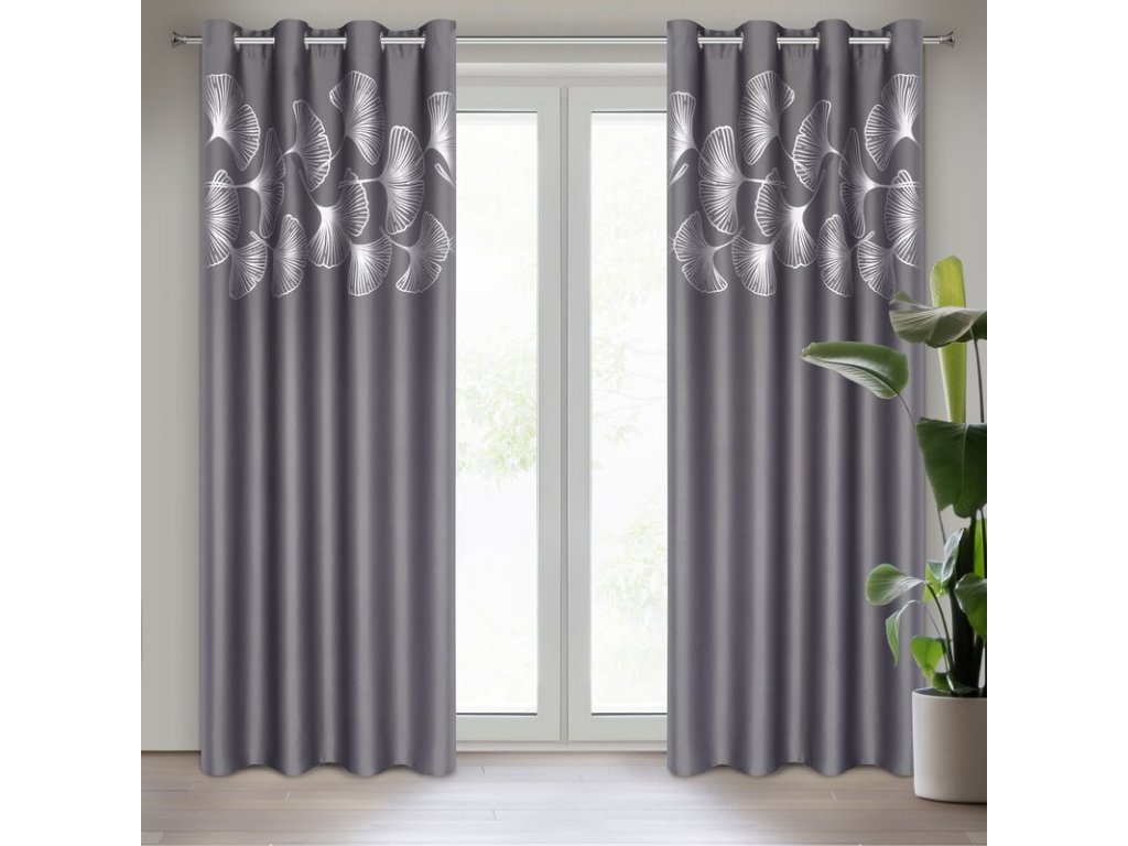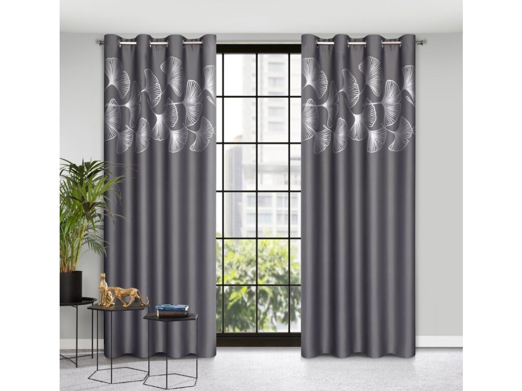 Zasłona zaciemniająca z błyszczącym nadrukiem szerokość: 140 cm, długość: 250 cm, kolor: GRAFITOVÝ, Gramatura: 210 GSM, Skład: 100% poliesterDoplňkové parametry