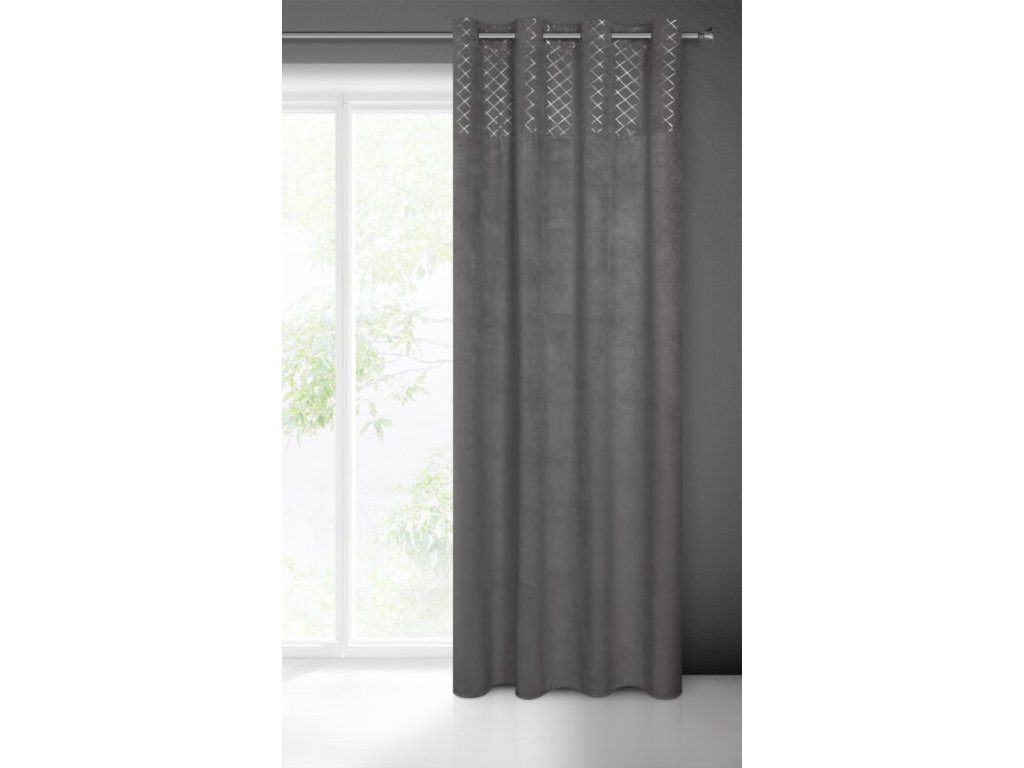 Welwetowa zasłona ze STŘÍBRNÝm nadrukiem szerokość: 140 cm, długość: 250 cm, kolor: GRAFITOVÝ, Gramatura: 200 GSM, Skład: 100% poliesterDoplňkové parametry