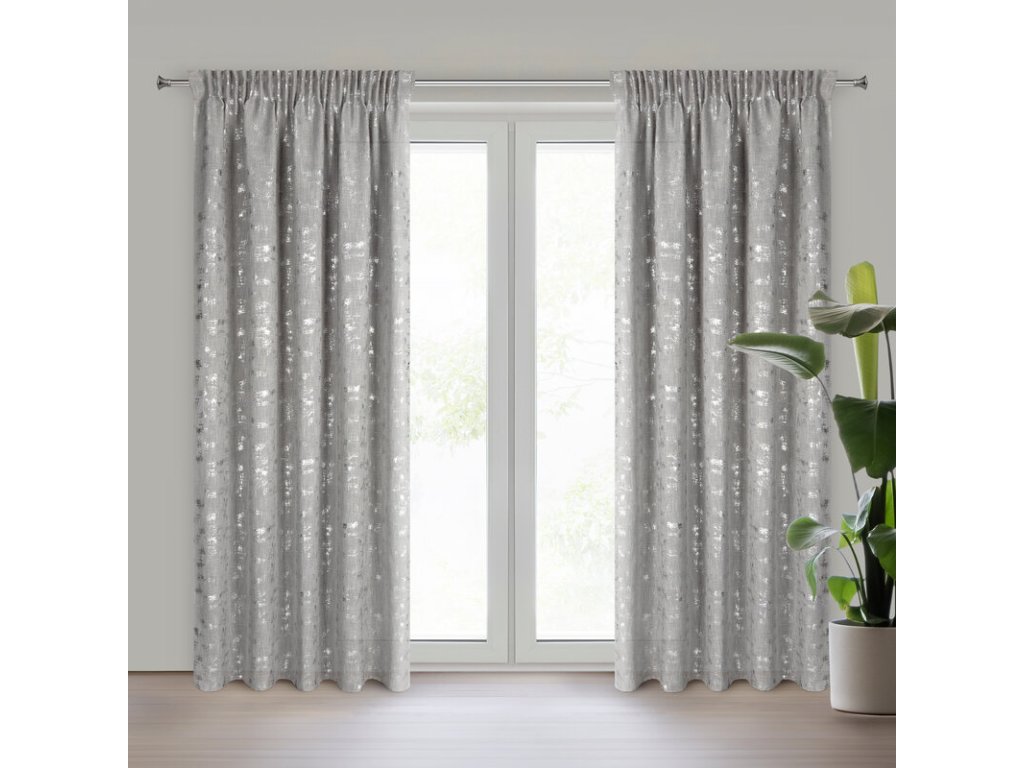 Zasłona w stylu eko z dodatkiem lnu oraz z błyszczącym nadrukiem szerokość: 140 cm, długość: 270 cm, kolor: STŘÍBRNÝ, Gramatura: 180 GSM, Skład: 5% len, 95% poliesterDoplňkové parametry