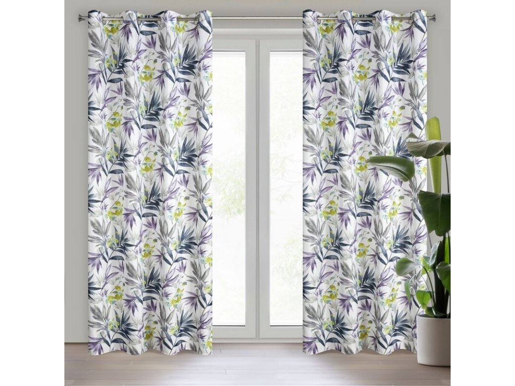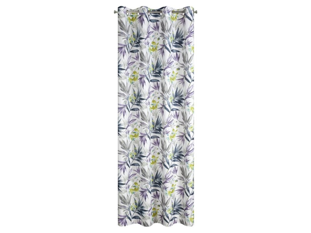 Dekoracyjna zasłona z tkaniny o średnich właściwościach zaciemniających. Zwiewna dekoracja zdobiona nadrukiem z motywem egzotycznych roślin. Lekko się prasuje. szerokość: 140 cm, długość: 250 cm, kolor: BÍLÝ, Gramatura: 75 GSM, Skład: 100% poliesterDoplňkové parametry