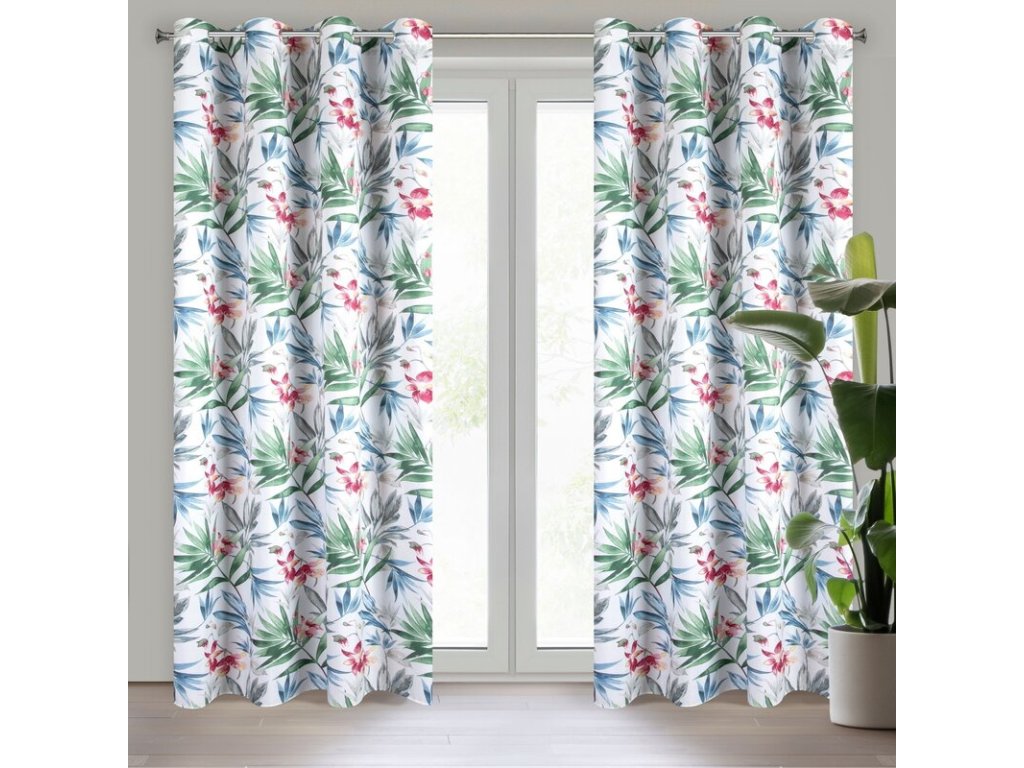 Dekoracyjna zasłona z tkaniny o średnich właściwościach zaciemniających. Zwiewna dekoracja zdobiona nadrukiem z motywem egzotycznych roślin. Lekko się prasuje. szerokość: 140 cm, długość: 250 cm, kolor: BÍLÝ, Gramatura: 75 GSM, Skład: 100% poliesterDoplňkové parametry