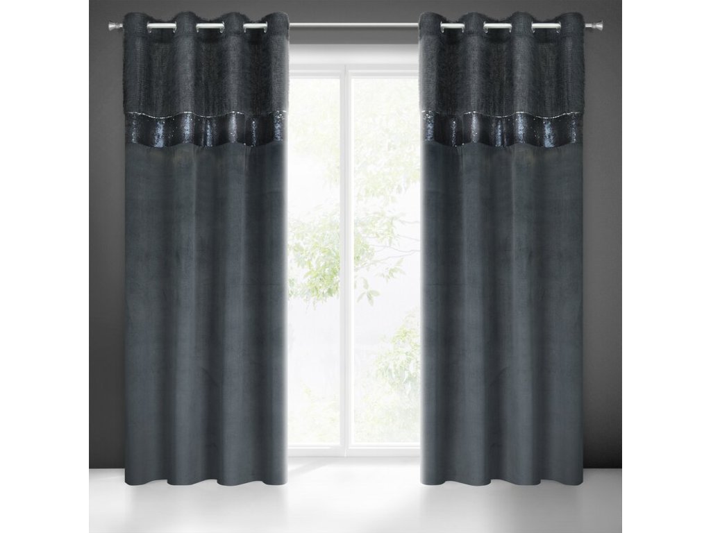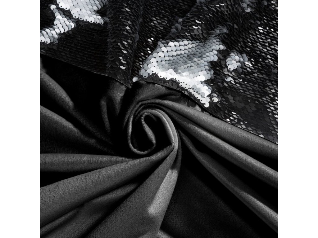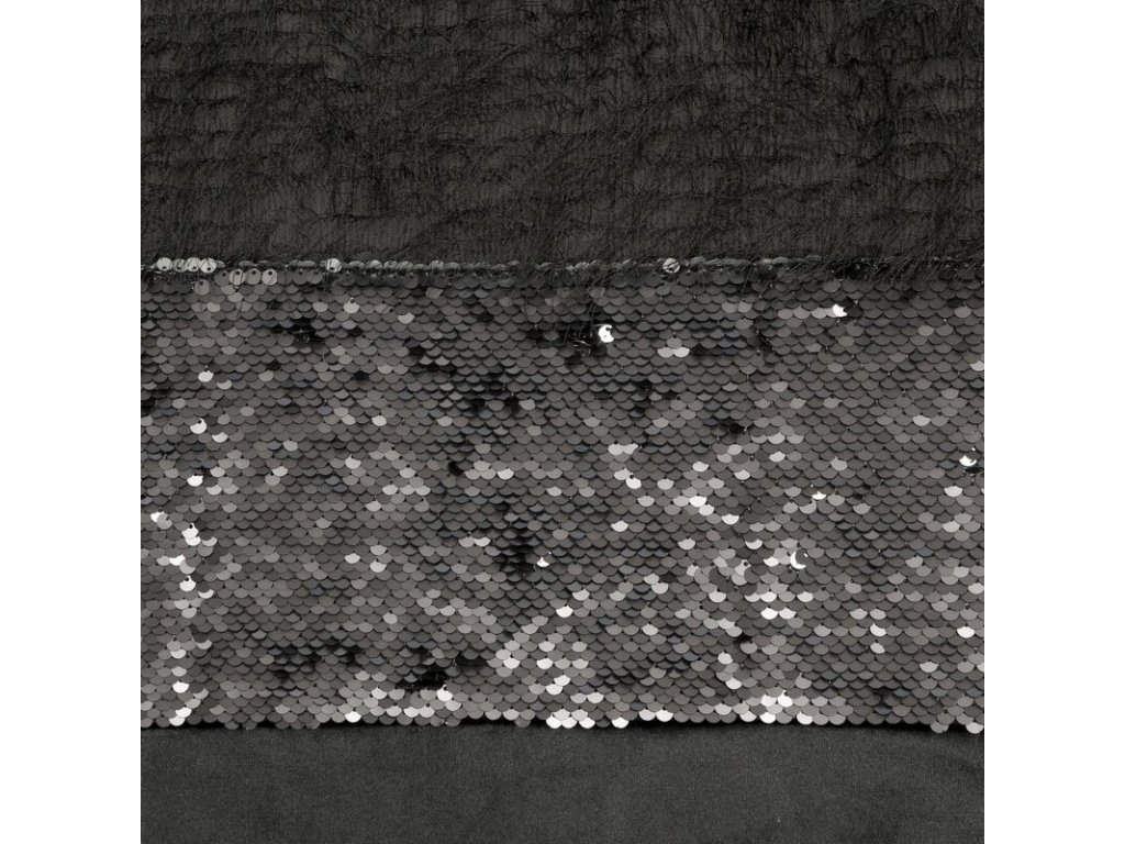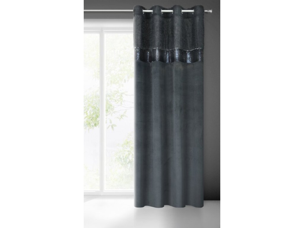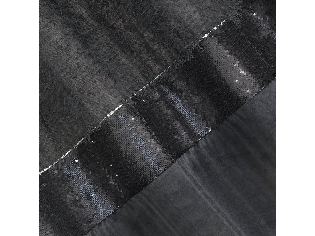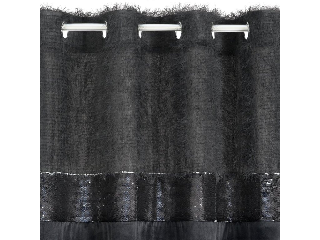 Zasłona welwetowa zdobiona taśmą z cekinami oraz moherową nicią szerokość: 140 cm, długość: 250 cm, kolor: ČERNÝ, Gramatura: 200 GSM, Skład: 100% poliesterDoplňkové parametry