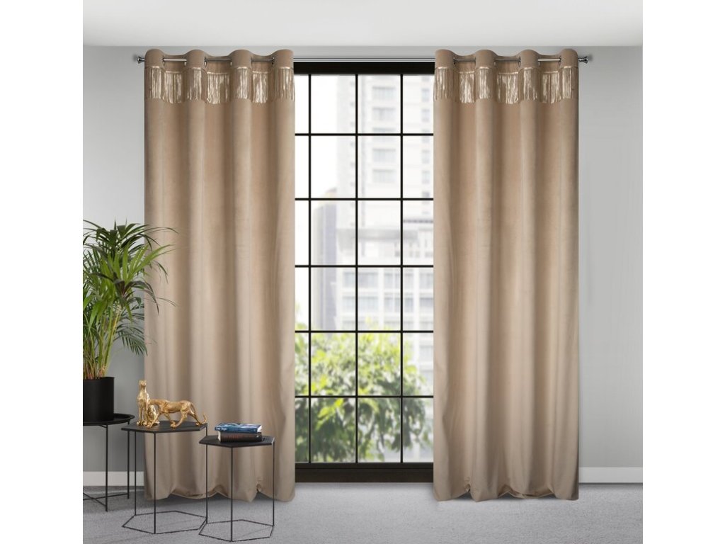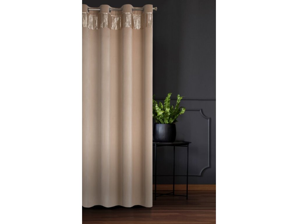 Zasłona welwetowa jednokolorowa z ozdobną taśmą z cekinami szerokość: 140 cm, długość: 250 cm, kolor: BÉŽOVÝ, Gramatura: 290 GSM, Skład: 100% poliesterDoplňkové parametry