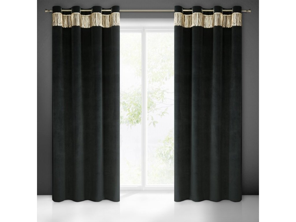 Zasłona welwetowa jednokolorowa z ozdobną taśmą z cekinami szerokość: 140 cm, długość: 250 cm, kolor: ČERNÝ, Gramatura: 290 GSM, Skład: 100% poliesterDoplňkové parametry