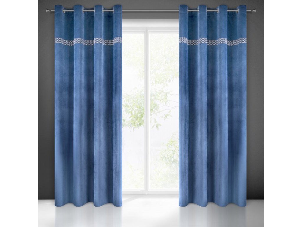 Zasłona welwetowa ze wzorem z ŠAMPAŇSKÁch dżetów szerokość: 140 cm, długość: 250 cm, kolor: NÁMOŘNICKÁ MODRÁ, Gramatura: 200 GSM, Skład: 100% poliesterDoplňkové parametry