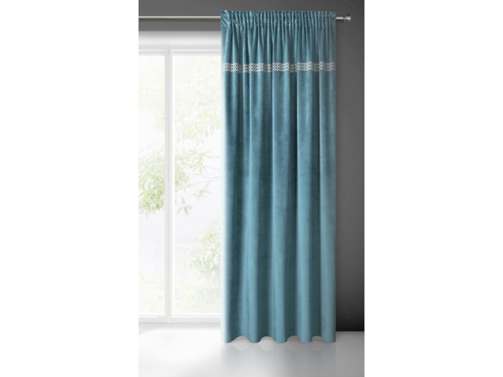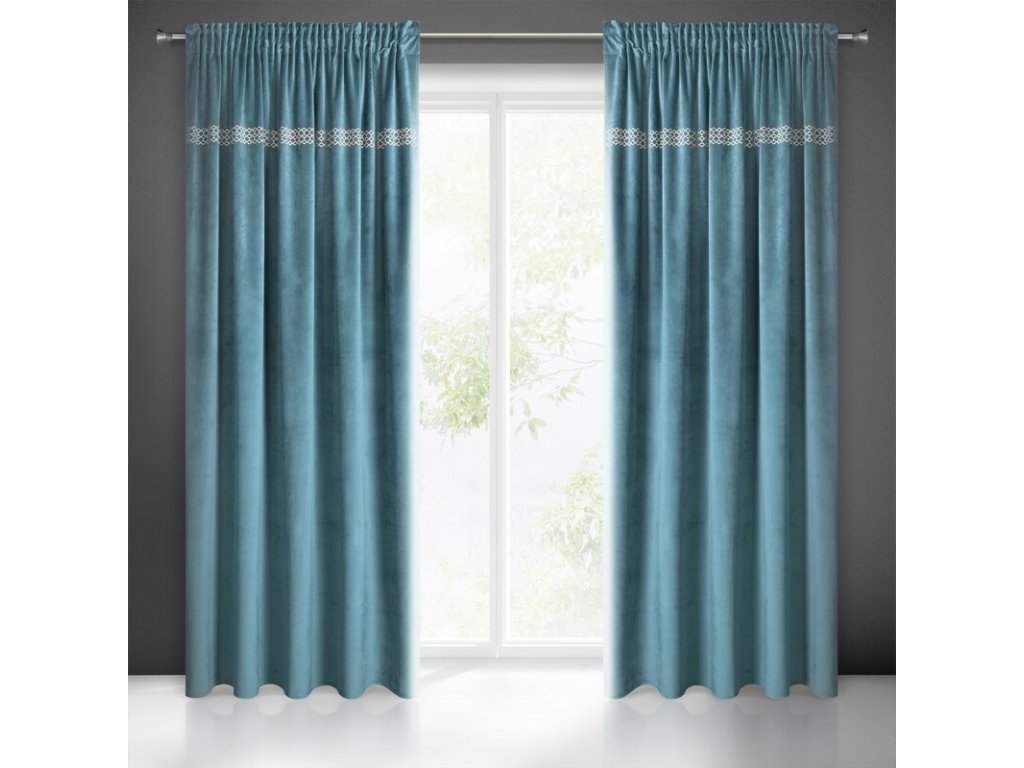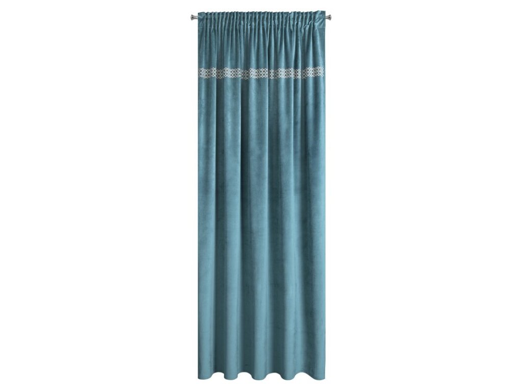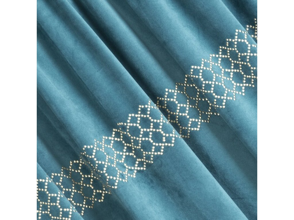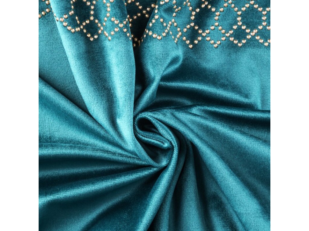 Zasłona welwetowa ze wzorem z ŠAMPAŇSKÁch dżetów szerokość: 140 cm, długość: 270 cm, kolor: TMAVĚ TYRKYSOVÝ, Gramatura: 200 GSM, Skład: 100% poliesterDoplňkové parametry