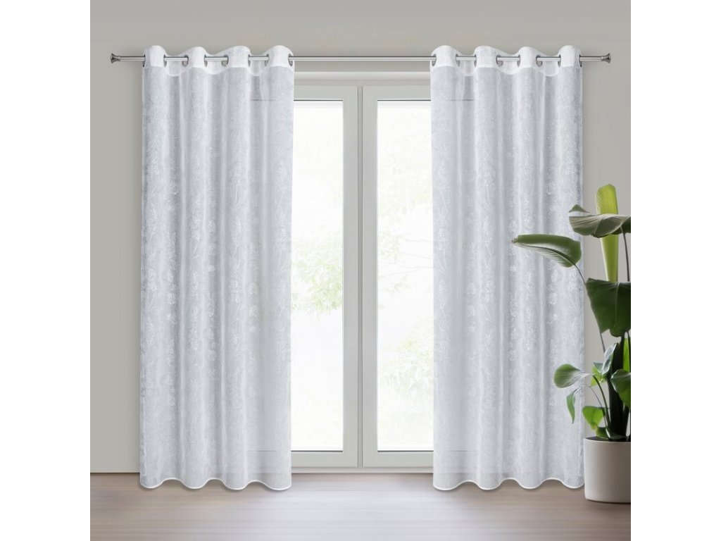 Zasłona gotowa z błyszczącym nadrukiem szerokość: 140 cm, długość: 250 cm, kolor: BÍLÝ, Skład: 100% poliesterDoplňkové parametry