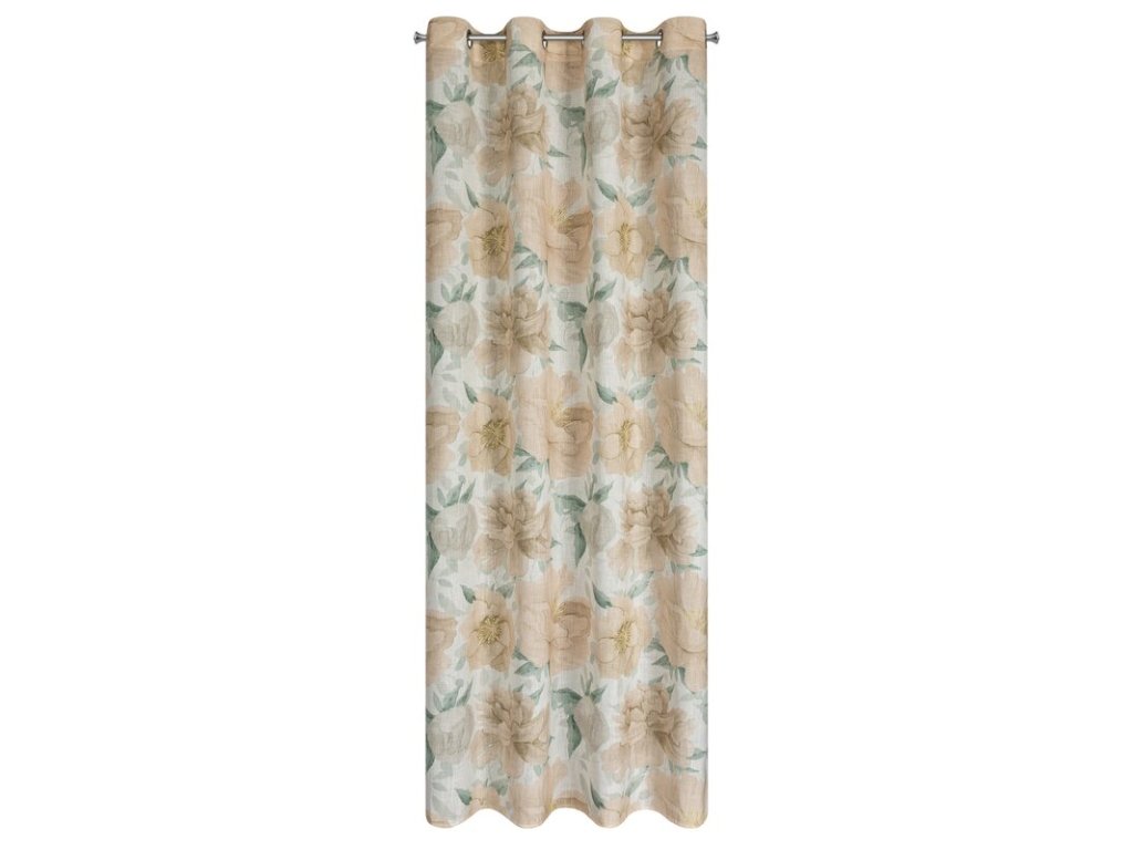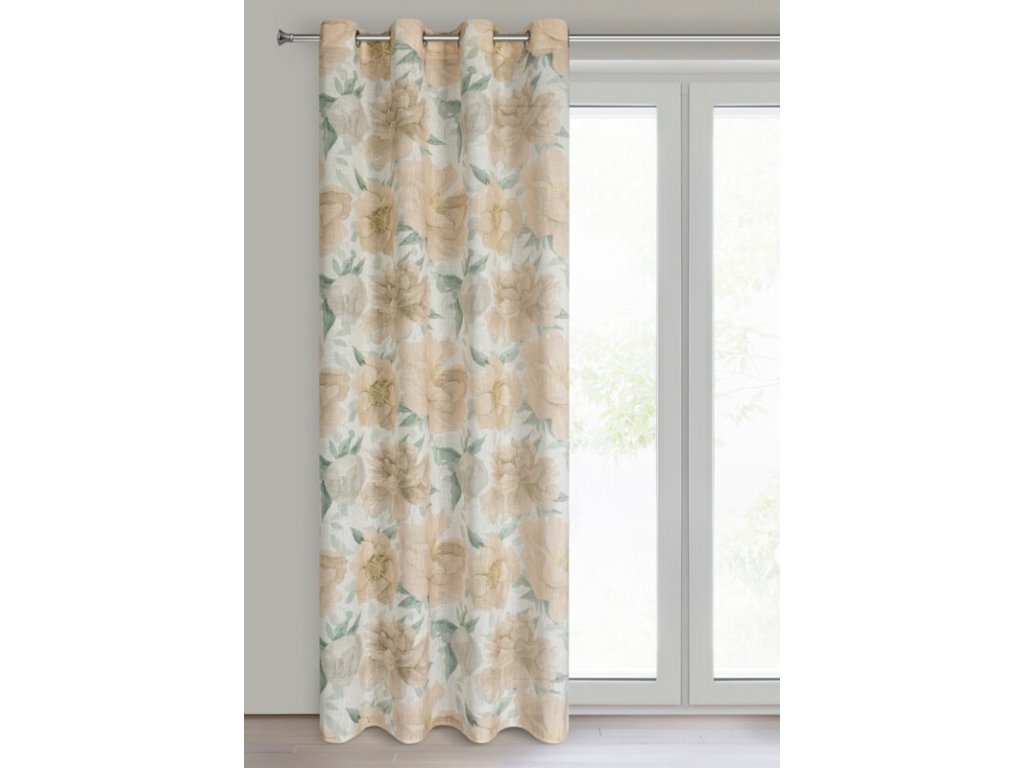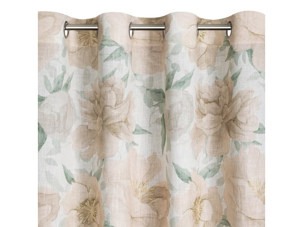 Zasłona gotowa z motywem kwiatów, z domieszką lnu szerokość: 140 cm, długość: 250 cm, kolor: PŘÍRODNÍ, Gramatura: 220 GSM, Skład: 15% len, 85% poliesterDoplňkové parametry