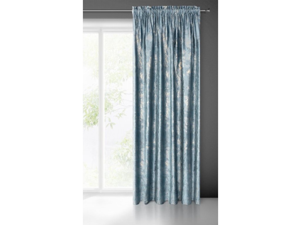 Zasłona welwetowa ze SVĚTLE ZLATÝm nadrukiem szerokość: 140 cm, długość: 270 cm, kolor: MODRÝ, Gramatura: 220 GSM, Skład: 100% poliesterDoplňkové parametry
