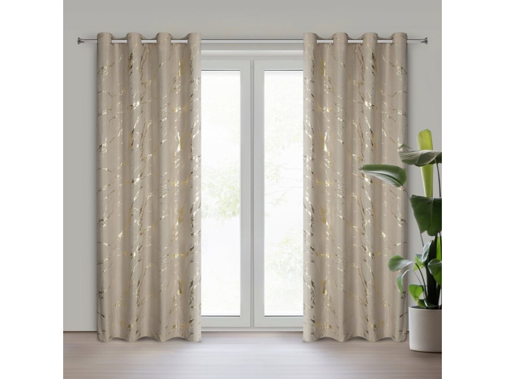 Zasłona gotowa z mikrofibry z błyszczącym nadrukiem szerokość: 140 cm, długość: 250 cm, kolor: BÉŽOVÝ, Gramatura: 75 GSM, Skład: 100% poliesterDoplňkové parametry