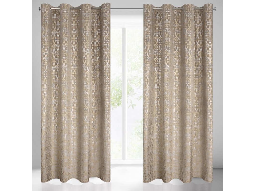Zasłona welwetowa ze SVĚTLE ZLATÝm i STŘÍBRNÝm nadrukiem szerokość: 140 cm, długość: 250 cm, kolor: BÉŽOVÝ, Gramatura: 200 GSM, Skład: 100% poliesterDoplňkové parametry