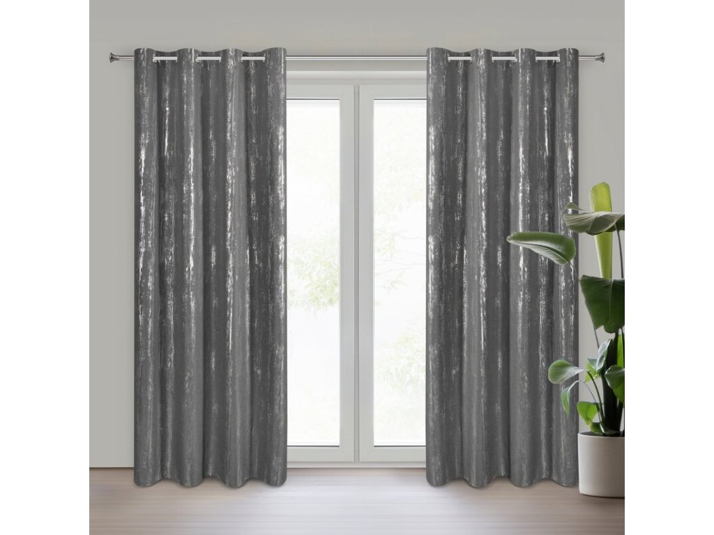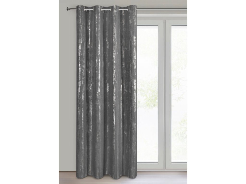 Zasłona gotowa z błyszczącym nadrukiem szerokość: 140 cm, długość: 250 cm, kolor: GRAFITOVÝ, Gramatura: 75 GSM, Skład: 100% poliesterDoplňkové parametry