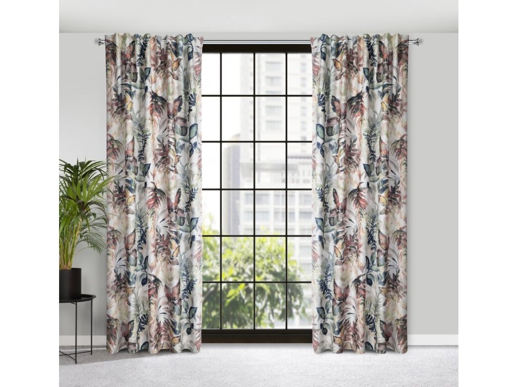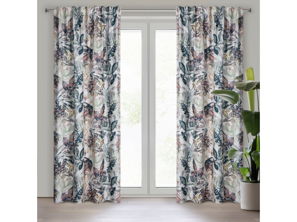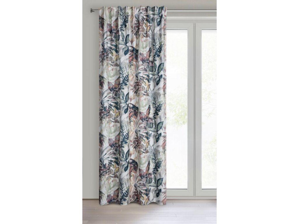 Zasłona na taśmie z ukrytymi szelkami z kwiatowym nadrukiem, styl eko szerokość: 140 cm, długość: 270 cm, kolor: BÍLÝ, Skład: 100% poliesterDoplňkové parametry