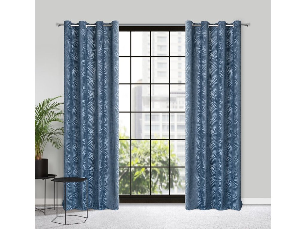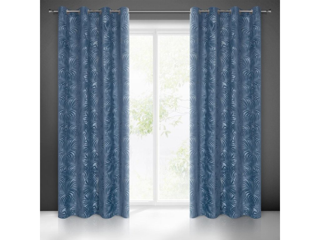 Zasłona jednokolorowa z motywem roślinnym szerokość: 140 cm, długość: 250 cm, kolor: TMAVĚ MODRÝ, Gramatura: 320 GSM, Skład: 100% poliesterDoplňkové parametry
