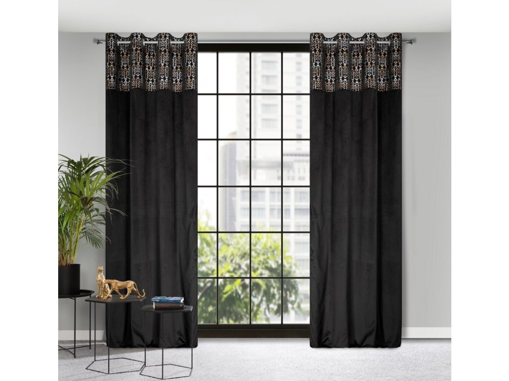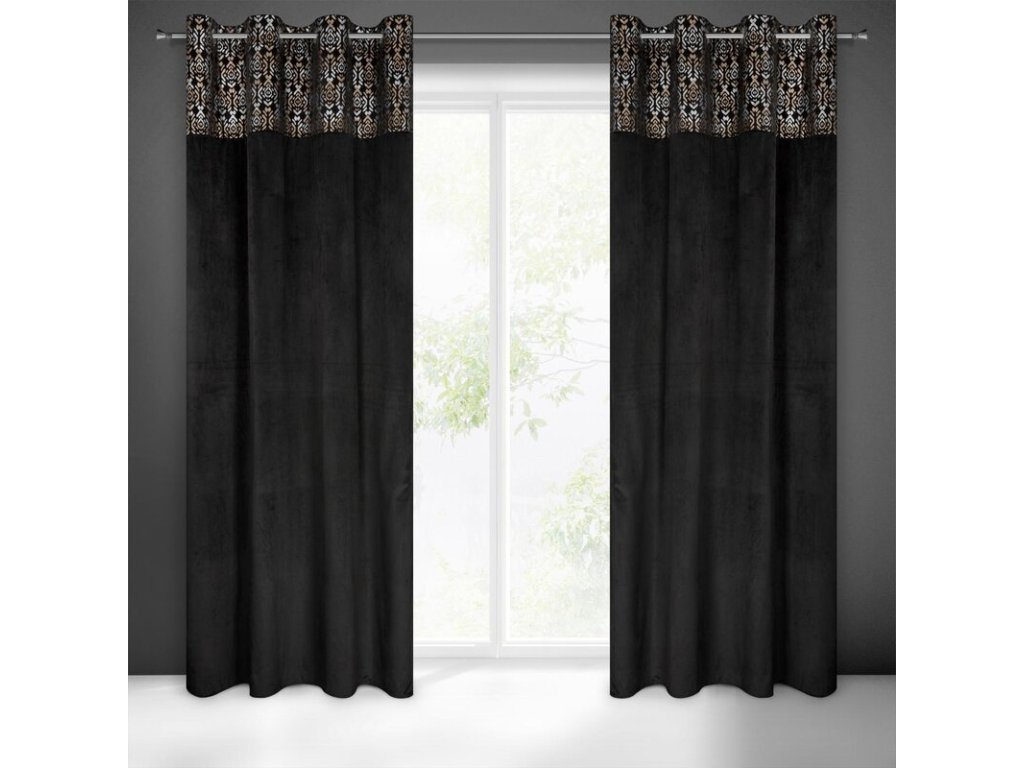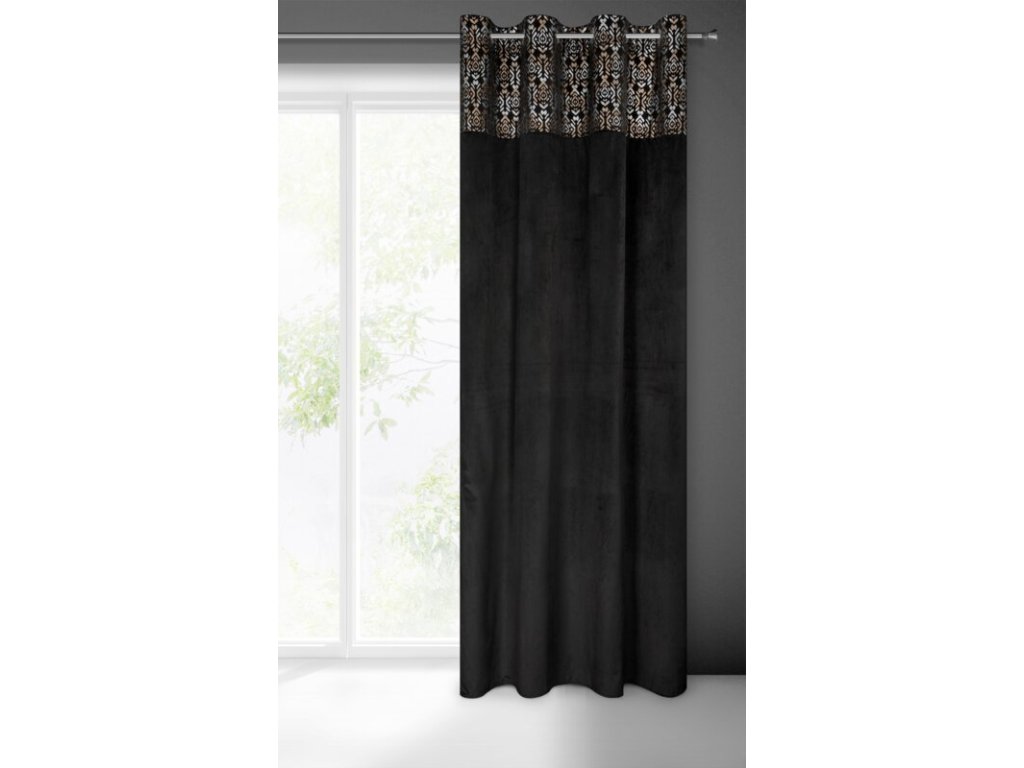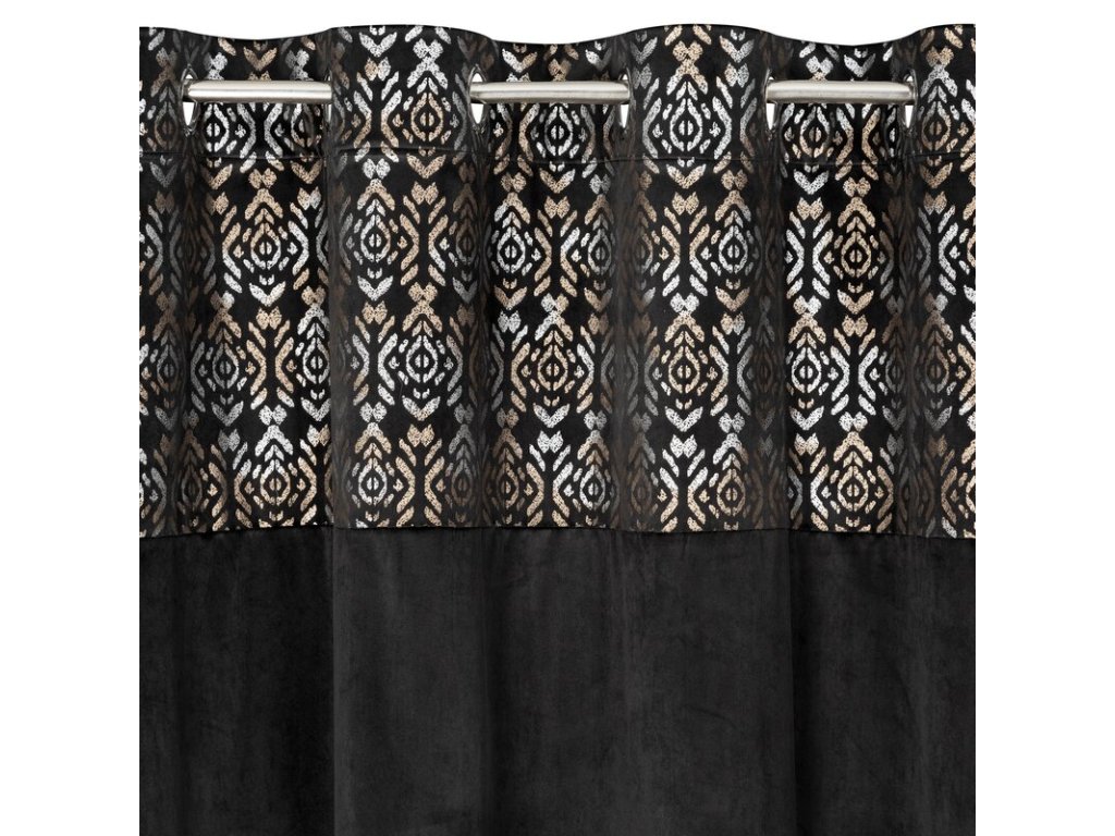 Zasłona welwetowa ze SVĚTLE ZLATÝm i STŘÍBRNÝm nadrukiem szerokość: 140 cm, długość: 250 cm, kolor: ČERNÝ, Gramatura: 200 GSM, Skład: 100% poliesterDoplňkové parametry