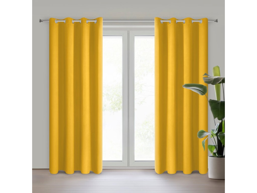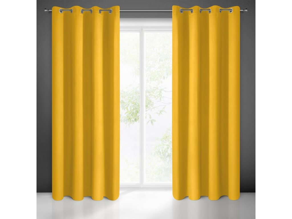 Elegancka zasłona jednokolorowa z tkaniny o wysokim stopniu zaciemnienia. Mięsisty, matowy materiał bez dekoroacji jest uniwersalnym elementem wystroju wnętrza. szerokość: 135 cm, długość: 250 cm, kolor: HOŘČICOVÝ, Gramatura: 210 GSM, Skład: 100% poliesterDoplňkové parametry