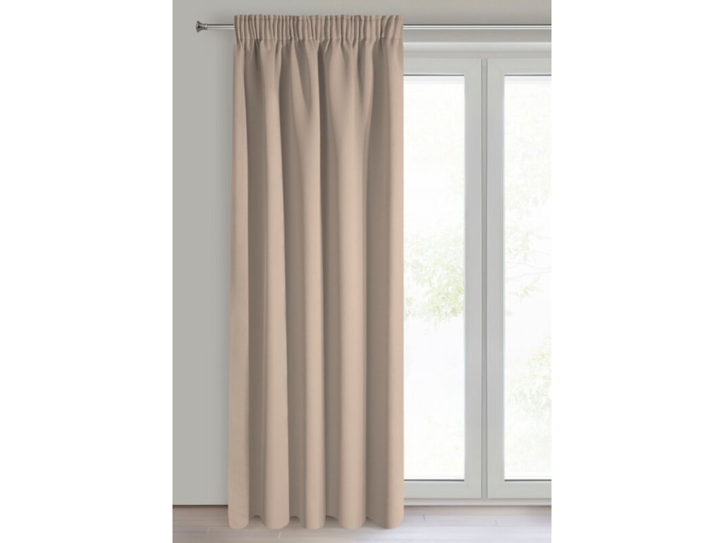 Elegancka zasłona jednokolorowa z tkaniny o wysokim stopniu zaciemnienia. Mięsisty, matowy materiał bez dekoroacji jest uniwersalnym elementem wystroju wnętrza. szerokość: 135 cm, długość: 270 cm, kolor: BÉŽOVÝ, Gramatura: 210 GSM, Skład: 100% poliesterDoplňkové parametry