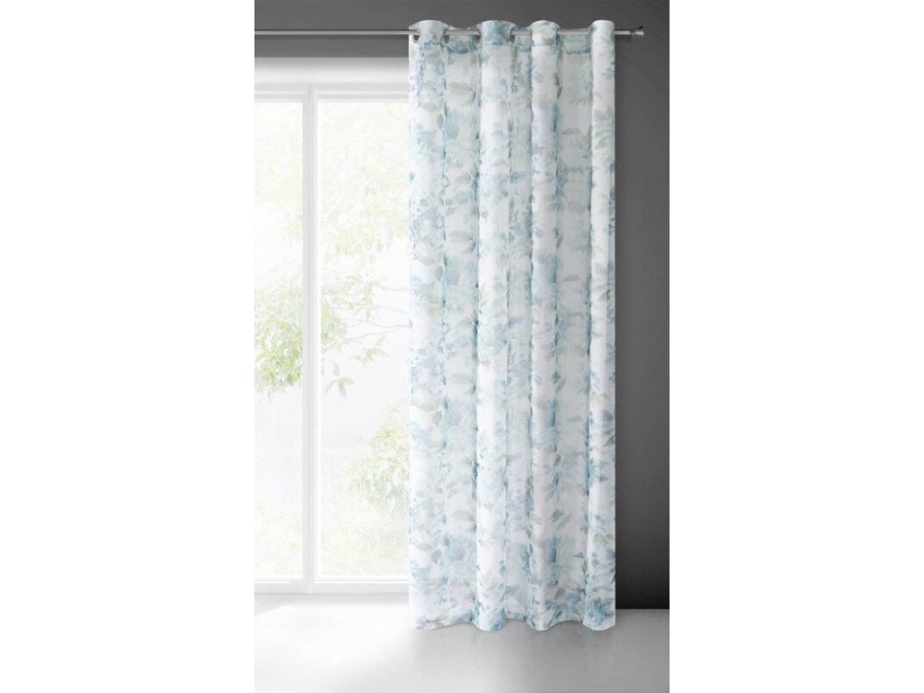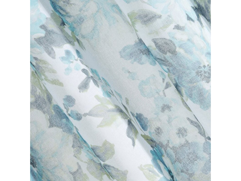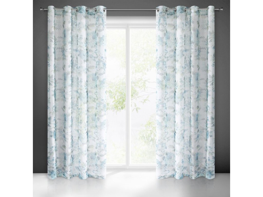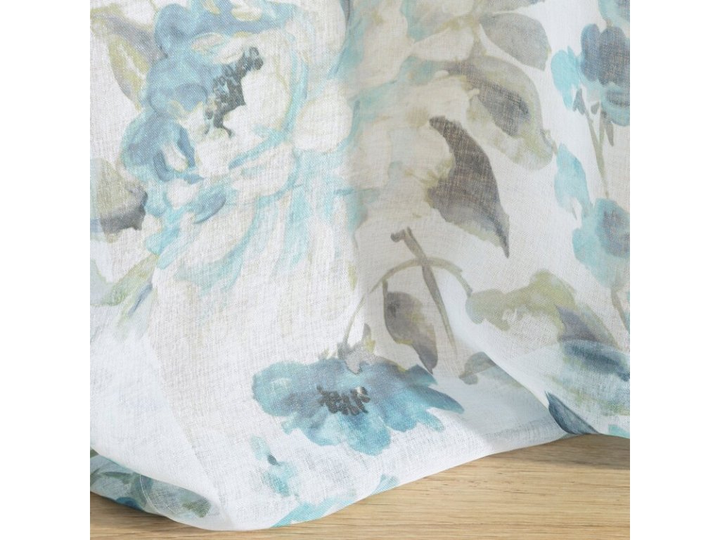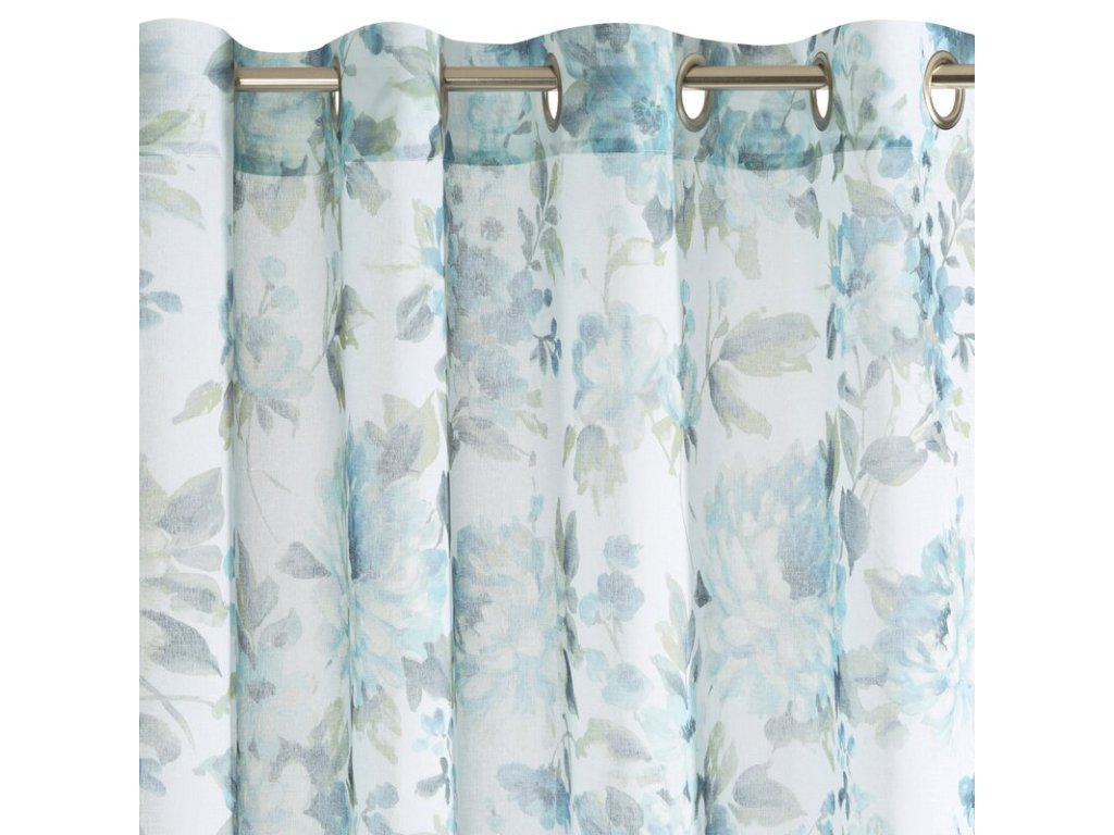 Bardzo delikatna, połprzejrzysta zasłona gotowa na przelotkach z nadrukiem modnych kwiatów z efektem akwarelowego rozmycia. Łatwa w praniu i prasowaniu. szerokość: 140 cm, długość: 250 cm, kolor: MODRÝ, Gramatura: 80 GSM, Skład: 100% poliesterDoplňkové parametry