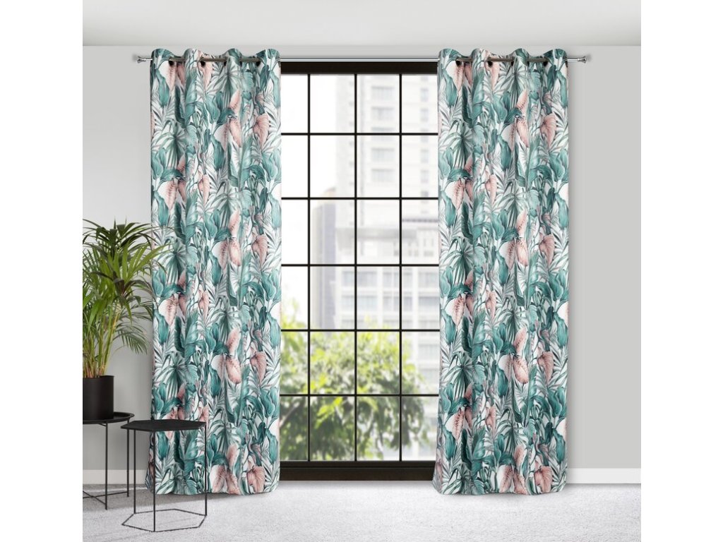 Zasłona welwetowa z kwiatowym nadrukiem szerokość: 140 cm, długość: 250 cm, kolor: ZELENÝ, Gramatura: 200 GSM, Skład: 100% poliesterDoplňkové parametry