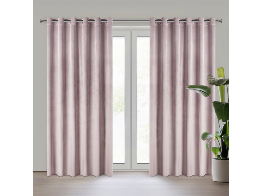 Miękka zasłona z welwetu o matowym wykończeniu. Mięsista tkanina o średnich właściwościach zaciemniających nadaje wnętrzu eleganckiego charakteru. szerokość: 215 cm, długość: 250 cm, kolor: PUDROVĚ RŮŽOVÁ, Gramatura: 200 GSM, Skład: 100% poliesterDoplňkové parametry