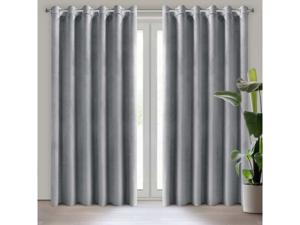 Miękka zasłona z welwetu o matowym wykończeniu. Mięsista tkanina o średnich właściwościach zaciemniających nadaje wnętrzu eleganckiego charakteru. szerokość: 215 cm, długość: 250 cm, kolor: ŠEDÝ, Gramatura: 200 GSM, Skład: 100% poliesterDoplňkové parametry