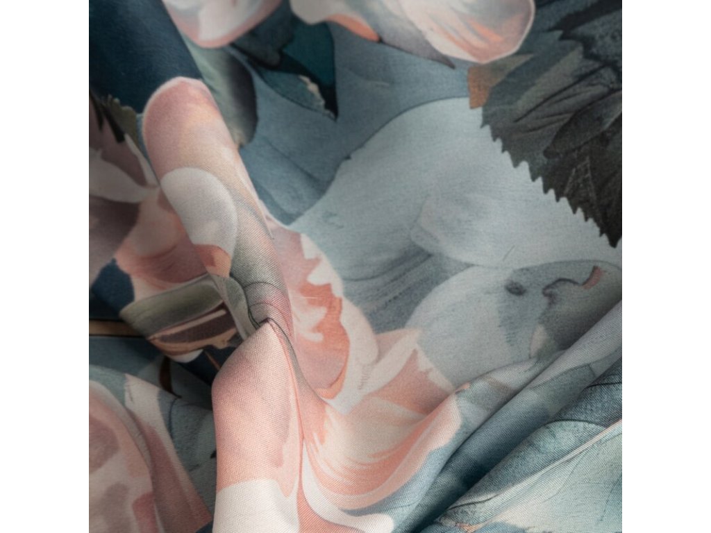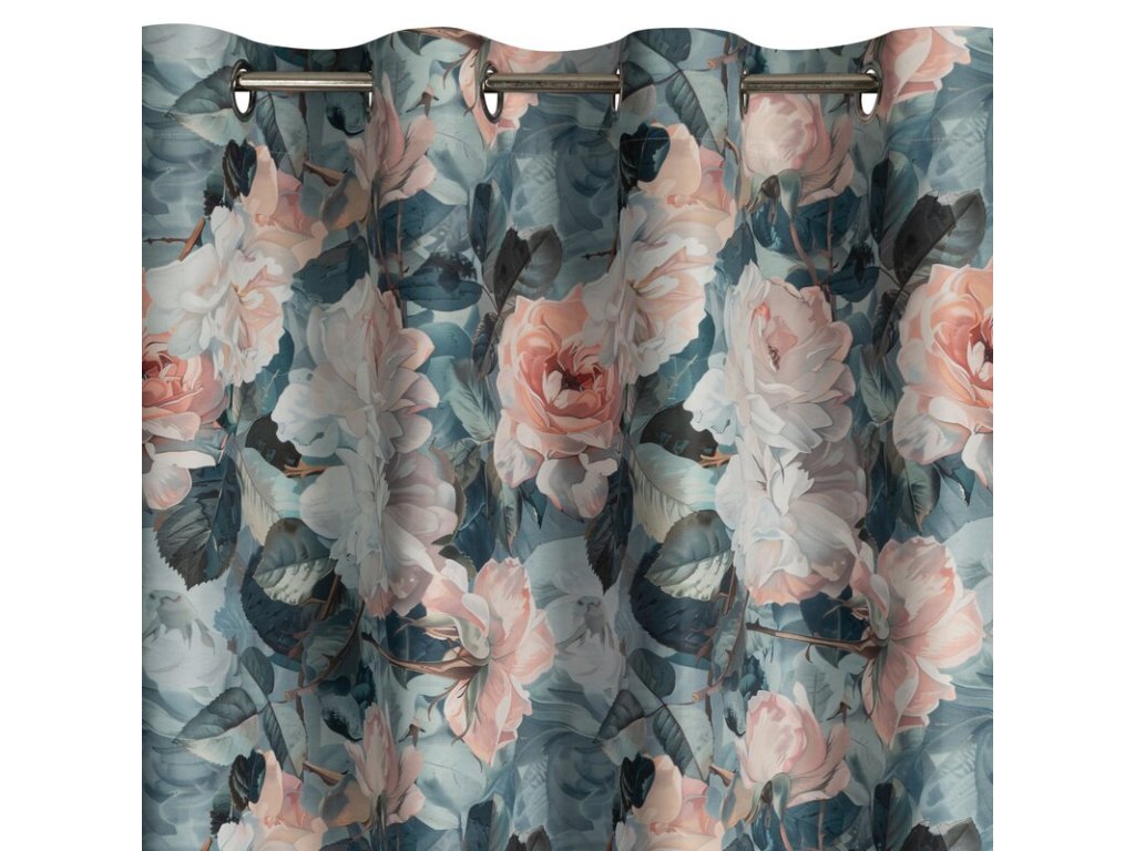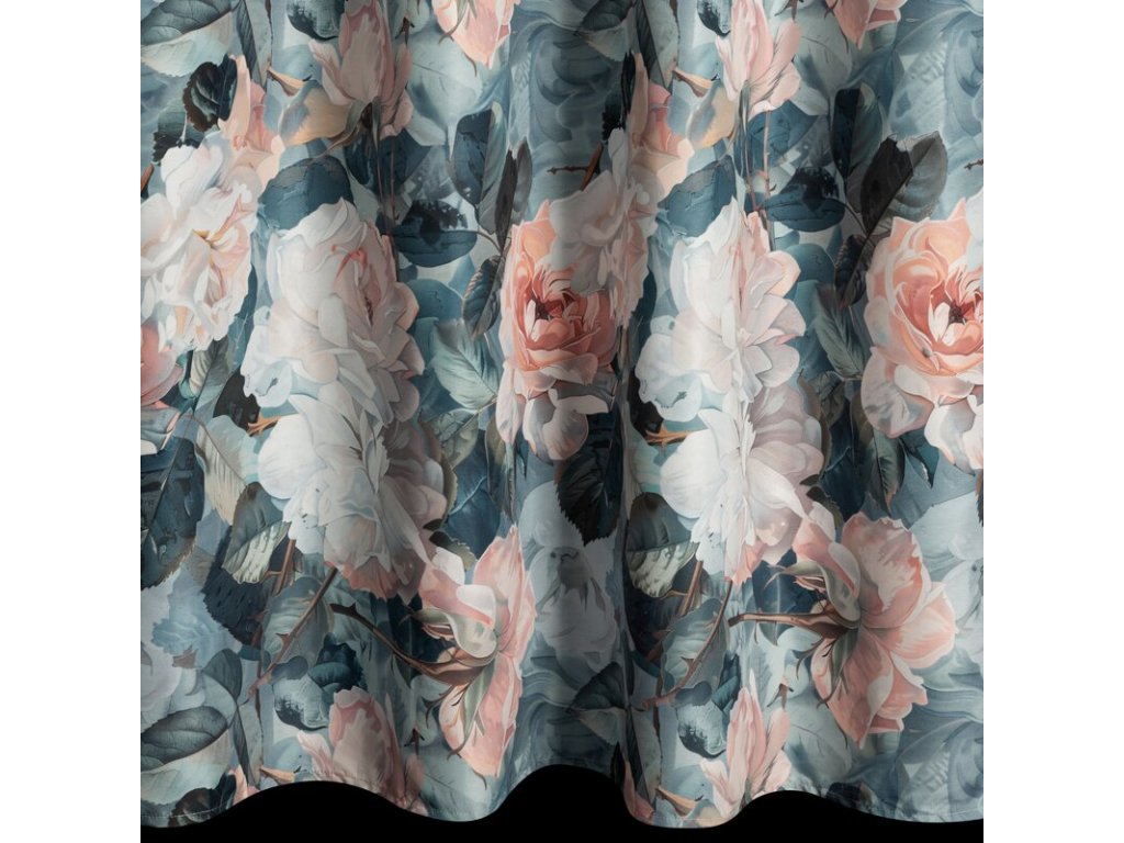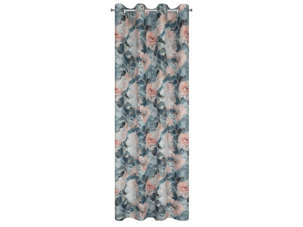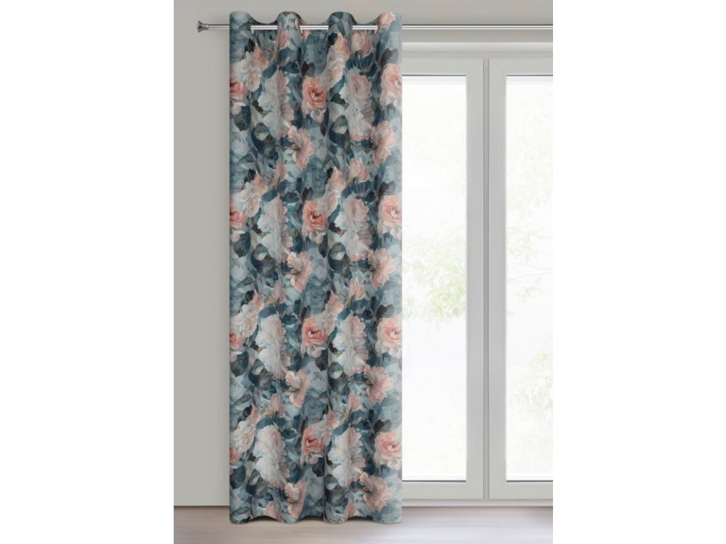Zasłona gotowa z mikrofibry z kwiatowym nadrukiem szerokość: 140 cm, długość: 250 cm, kolor: TYRKYSOVÝ, Gramatura: 70 GSM, Skład: 100% poliesterDoplňkové parametry