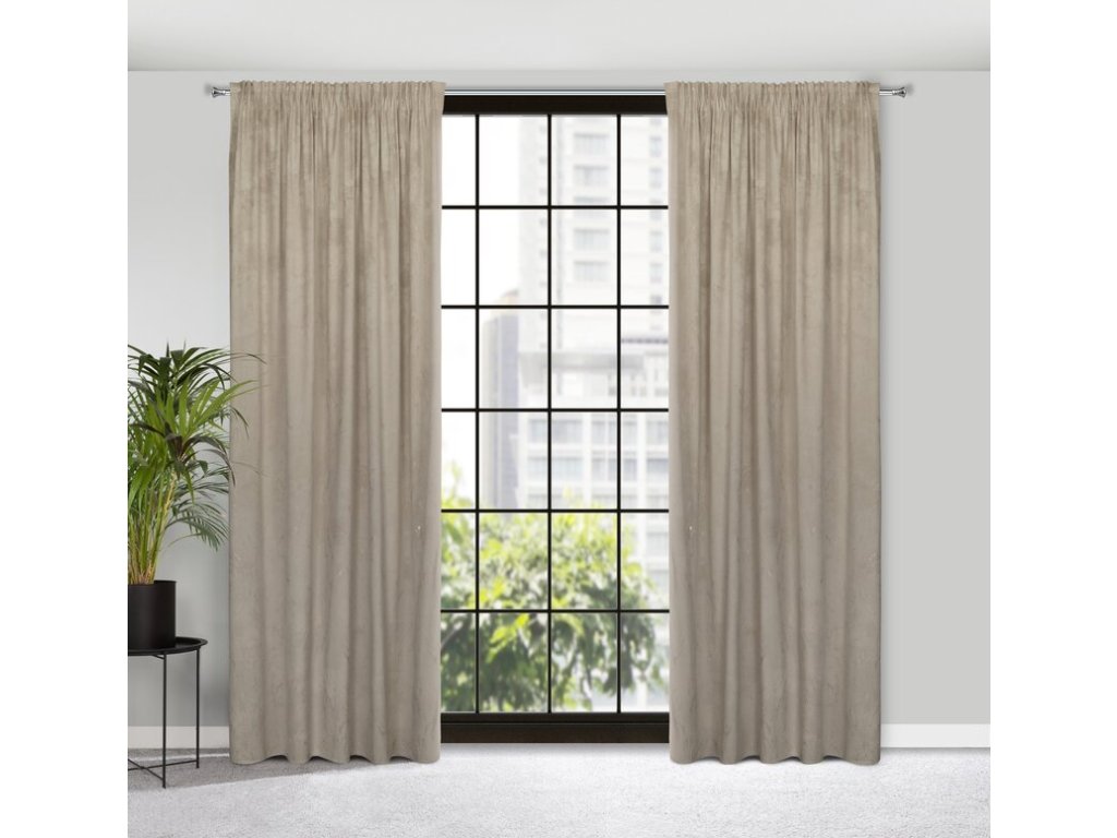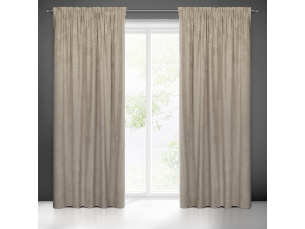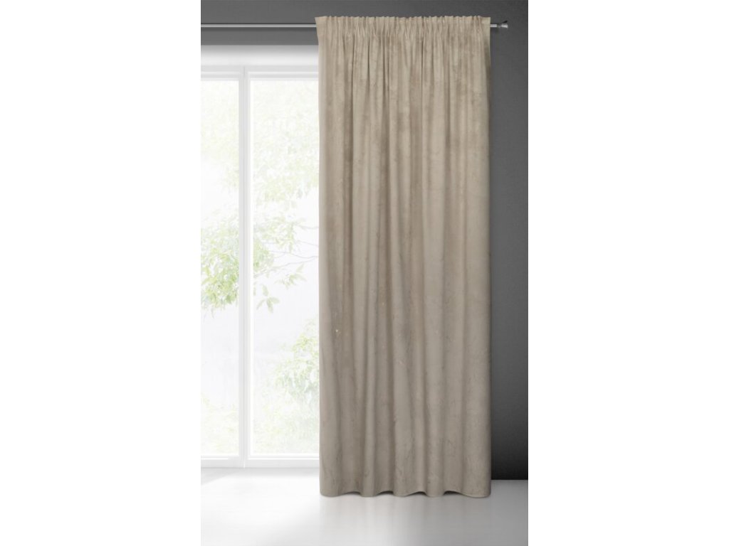 Zasłona welwetowa ze SVĚTLE ZLATÝm nadrukiem szerokość: 140 cm, długość: 300 cm, kolor: BÉŽOVÝ, Gramatura: 200 GSM, Skład: 100% poliesterDoplňkové parametry