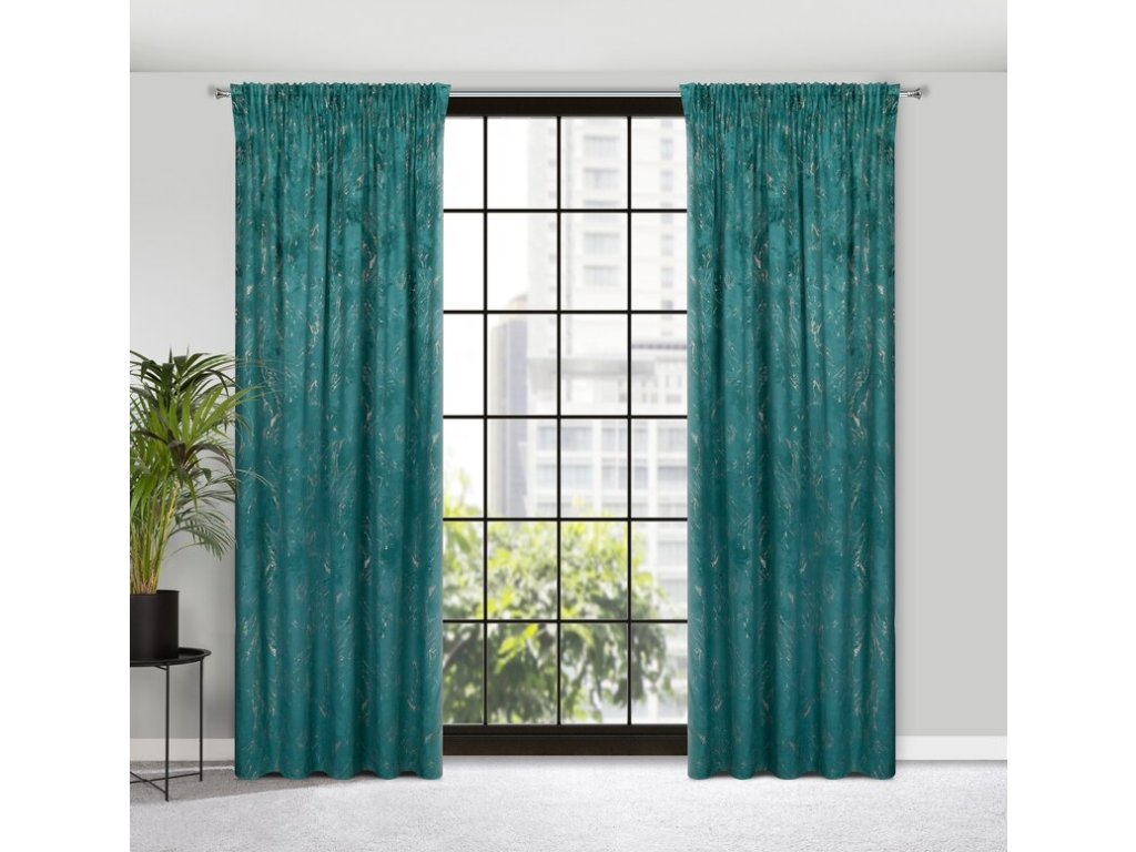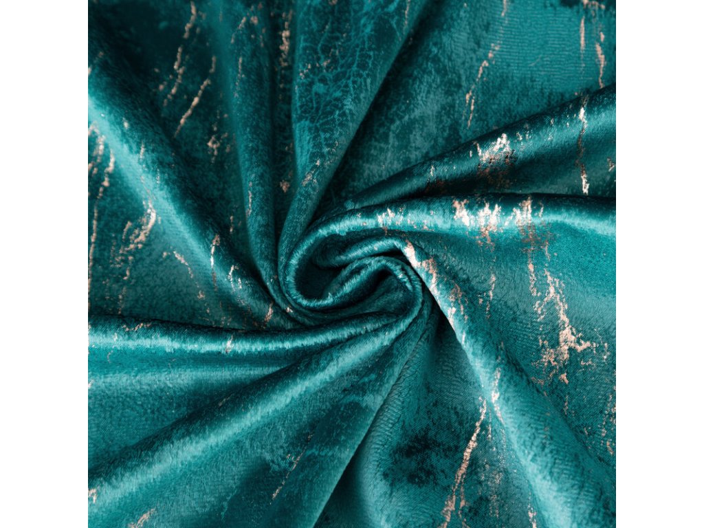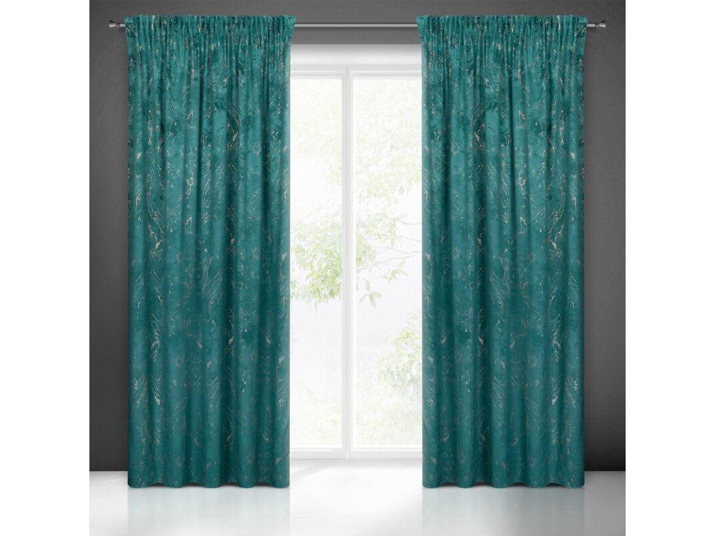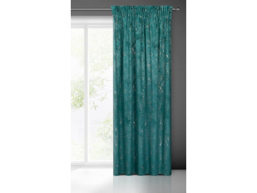 Zasłona welwetowa ze SVĚTLE ZLATÝm nadrukiem szerokość: 140 cm, długość: 300 cm, kolor: TMAVĚ TYRKYSOVÝ, Gramatura: 200 GSM, Skład: 100% poliesterDoplňkové parametry