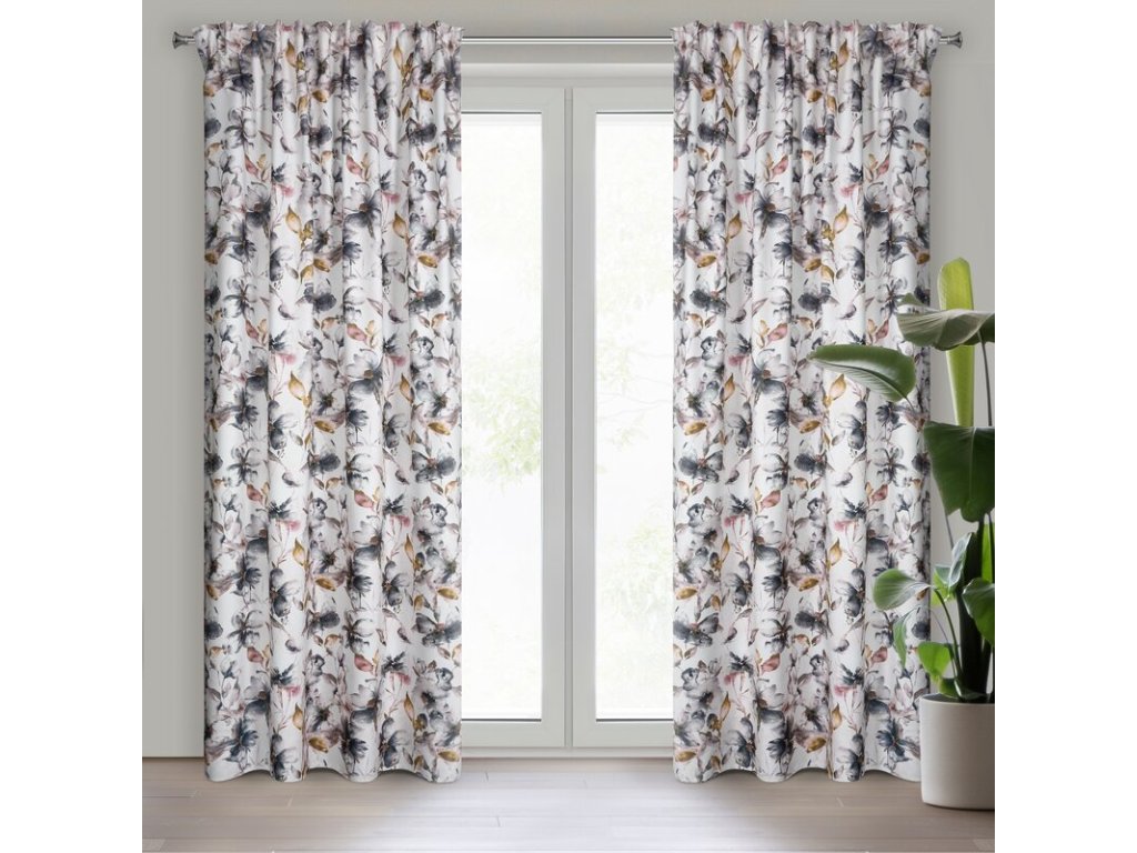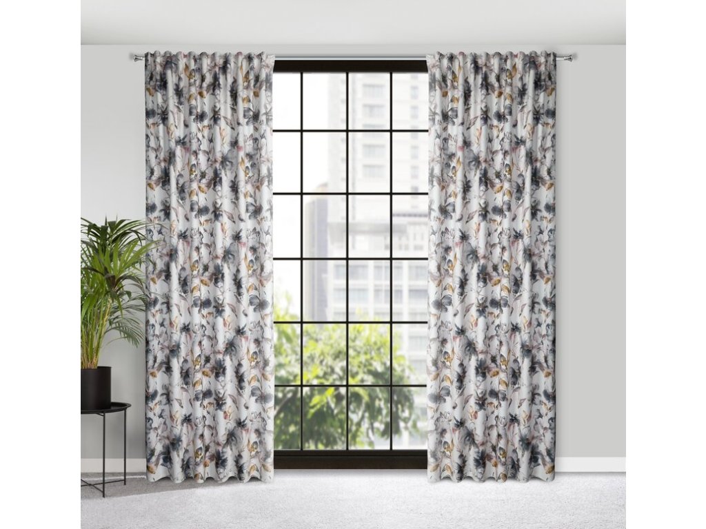 Zasłona na taśmie z ukrytymi szelkami z kwiatowym nadrukiem, styl eko szerokość: 140 cm, długość: 270 cm, kolor: BÍLÝ, Gramatura: 260 GSM, Skład: 100% poliesterDoplňkové parametry