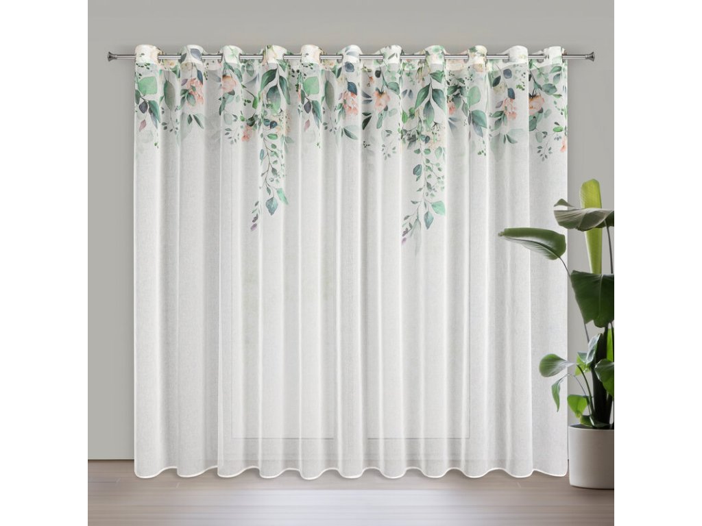 Zasłona gotowa z kwiatowym nadrukiem w górnej części szerokość: 350 cm, długość: 250 cm, kolor: BÍLÝ, Gramatura: 70 GSM, Skład: 100% poliesterDoplňkové parametry