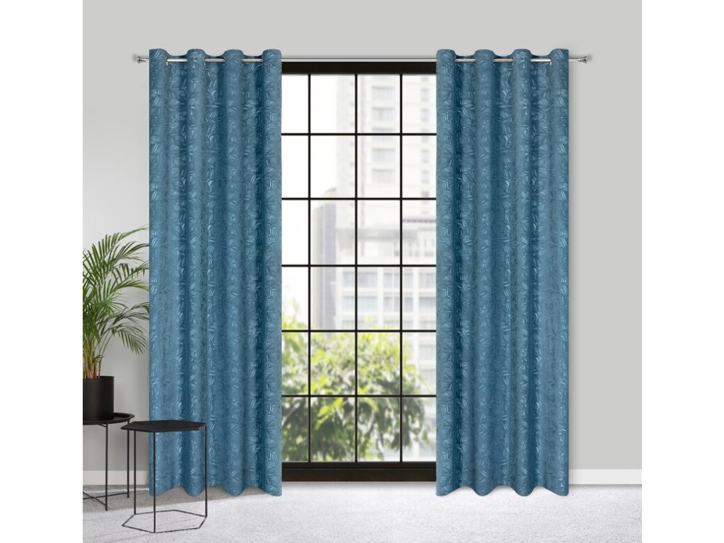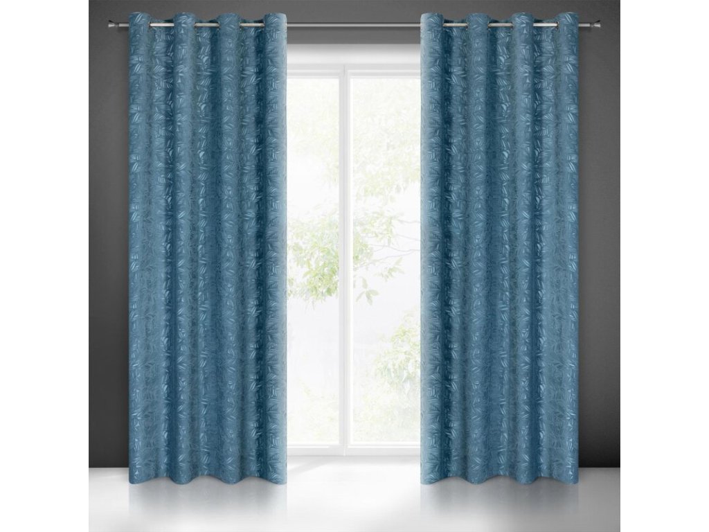 Zasłona z welwetu wycinanego z motywem roślinnym szerokość: 140 cm, długość: 250 cm, kolor: MODRÝ, Gramatura: 320 GSM, Skład: 100% poliesterDoplňkové parametry