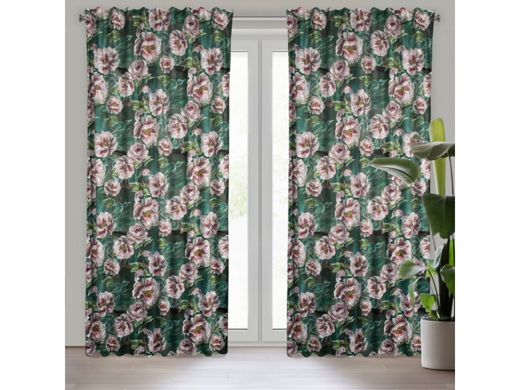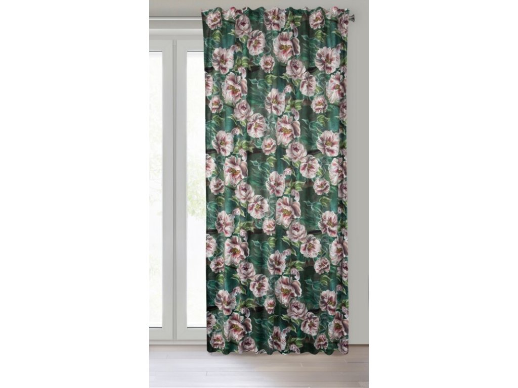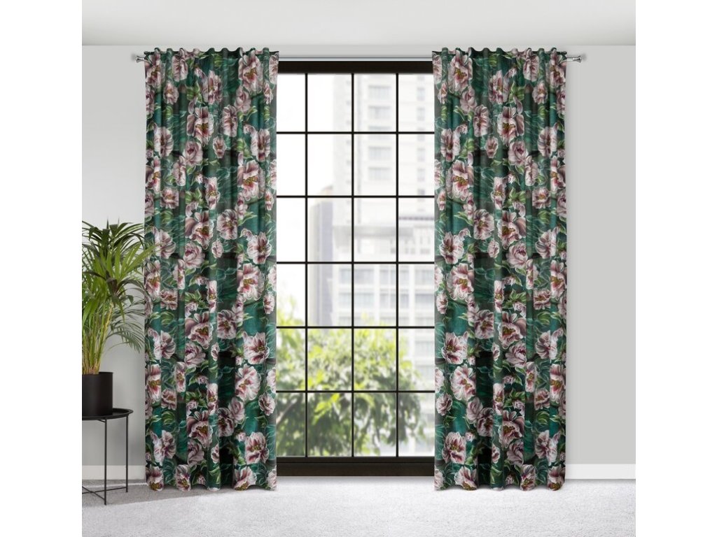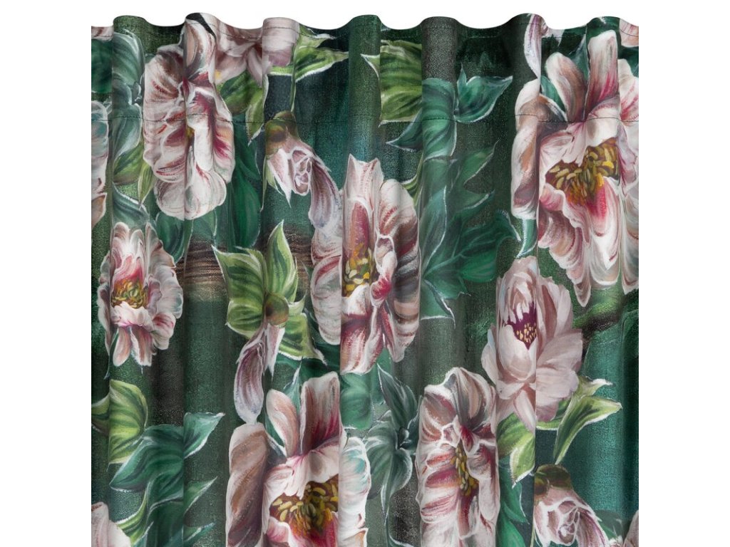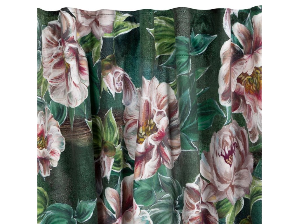 Zasłona welwetowa na taśmie z ukrytymi szelkami z kwiatowym nadrukiem szerokość: 140 cm, długość: 270 cm, kolor: ZELENÝ, Gramatura: 200 GSM, Skład: 100% poliesterDoplňkové parametry