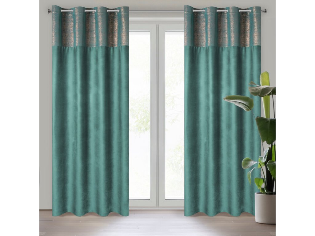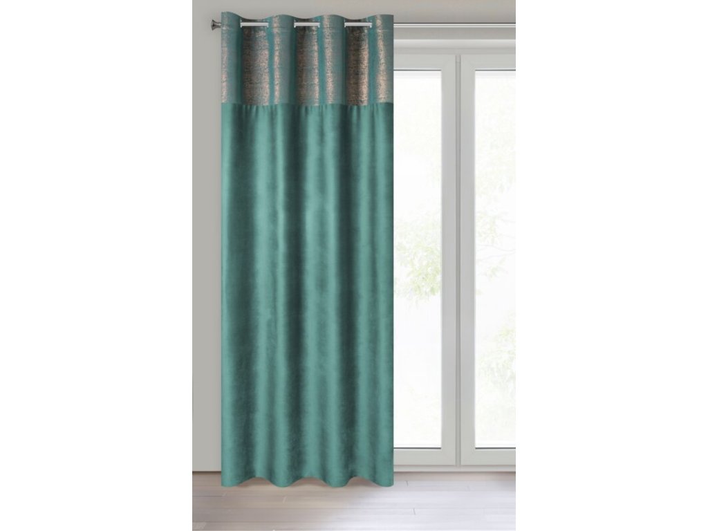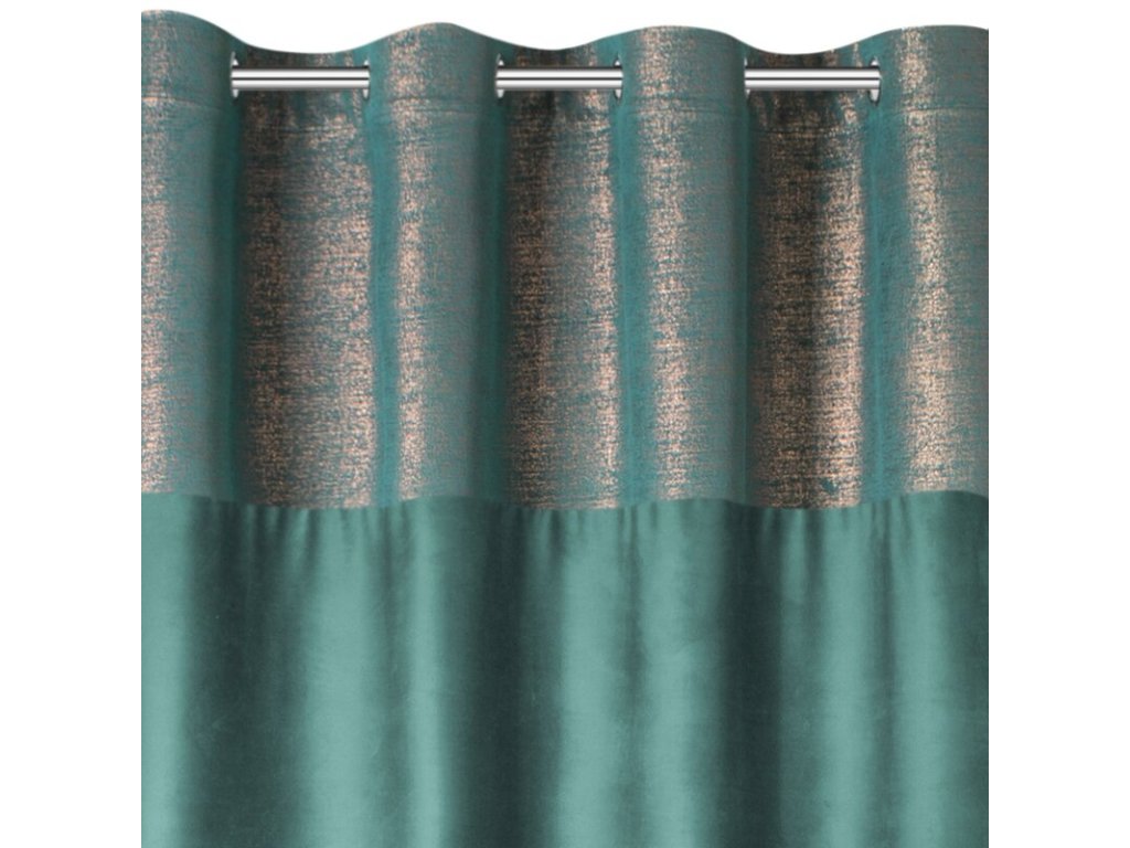 Zasłona welwetowa z miedzianym nadrukiem szerokość: 140 cm, długość: 250 cm, kolor: TMAVĚ TYRKYSOVÝ, Gramatura: 200 GSM, Skład: 100% poliesterDoplňkové parametry