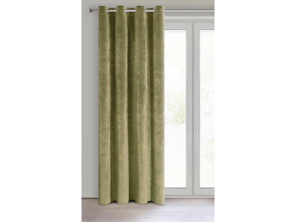 Zasłona welwetowa na 10 przelotkach szerokość: 140 cm, długość: 250 cm, kolor: OLIVOVÁ, Gramatura: 290 GSM, Skład: 100% poliesterDoplňkové parametry