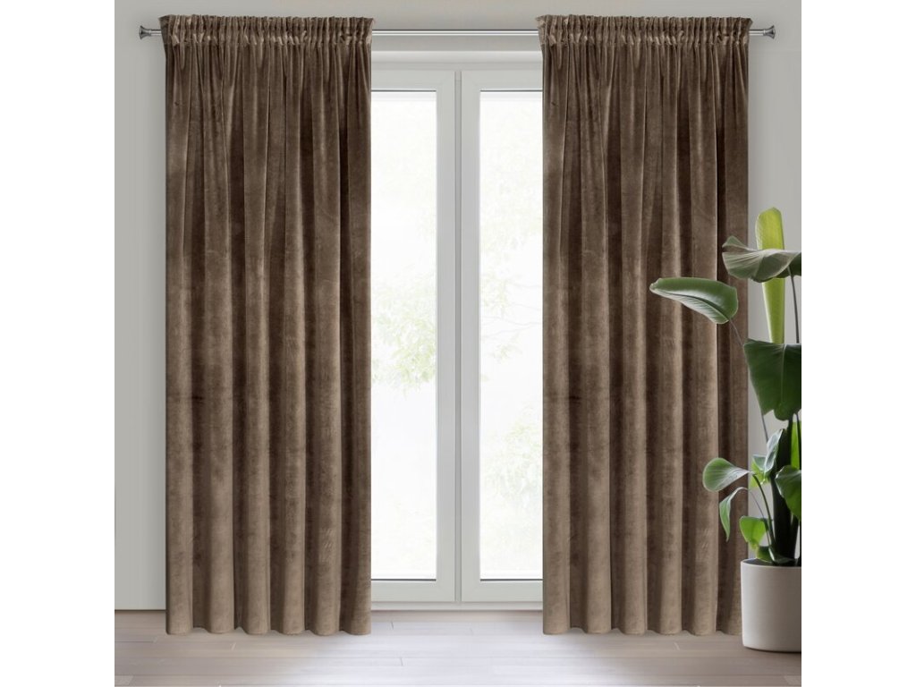 Zasłona welwetowa 140x270 posiada praktyczną tasmę tunelową szerokość: 140 cm, długość: 270 cm, kolor: HNĚDÝ, Gramatura: 290 GSM, Skład: 100% poliesterDoplňkové parametry