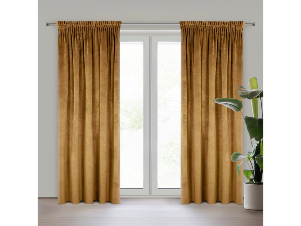 Zasłona welwetowa 140x270 posiada praktyczną tasmę tunelową szerokość: 140 cm, długość: 270 cm, kolor: MEDOVÝ, Gramatura: 290 GSM, Skład: 100% poliesterDoplňkové parametry