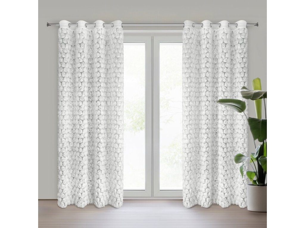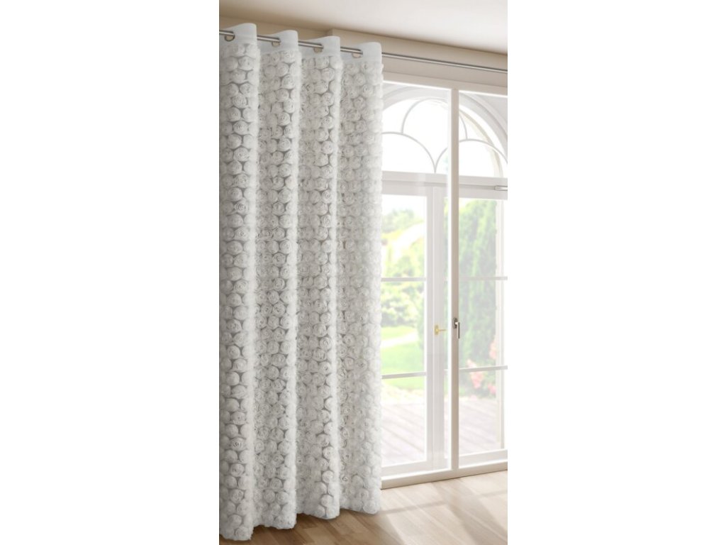 Zasłona gotowa z aplikacją w kształcie róż szerokość: 140 cm, długość: 250 cm, kolor: BÍLÝ, Skład: 100% poliesterDoplňkové parametry