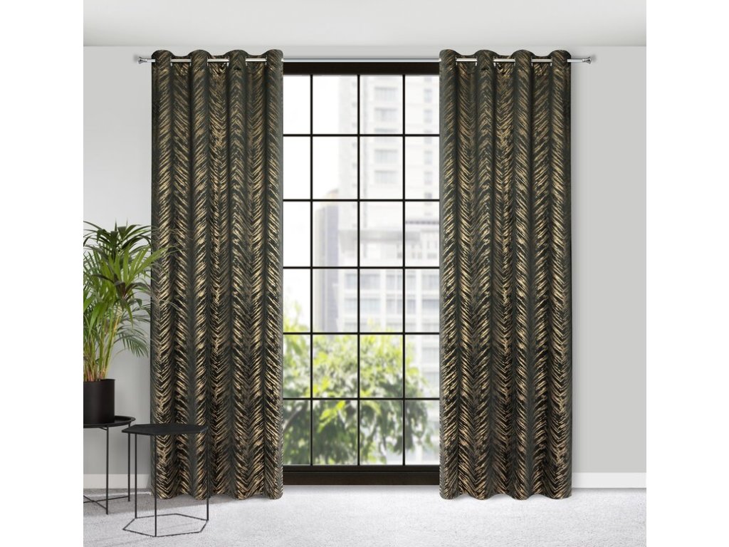 Zasłona welwetowa ze SVĚTLE ZLATÝm nadrukiem szerokość: 140 cm, długość: 250 cm, kolor: ČERNÝ, Gramatura: 200 GSM, Skład: 100% poliesterDoplňkové parametry