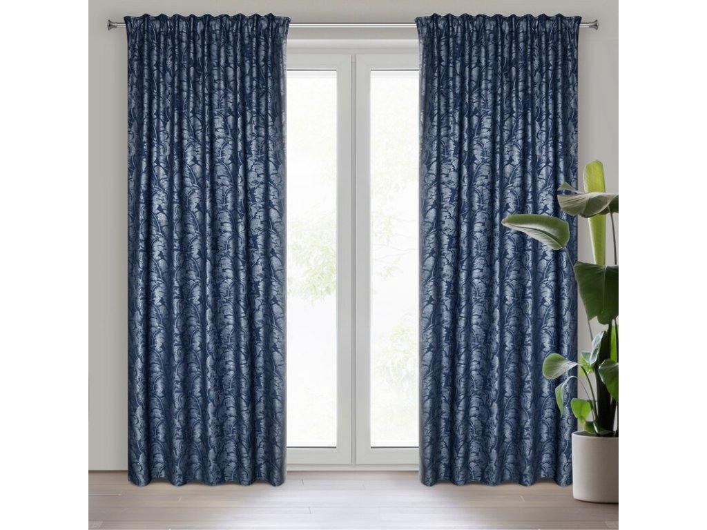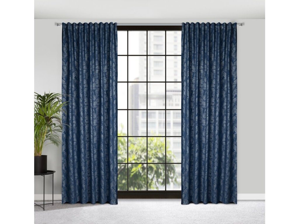 Zasłona na taśmie z ukrytymi szelkami z kwiatowym nadrukiem, styl eko szerokość: 140 cm, długość: 270 cm, kolor: NÁMOŘNICKÁ MODRÁ, Gramatura: 260 GSM, Skład: 100% poliesterDoplňkové parametry