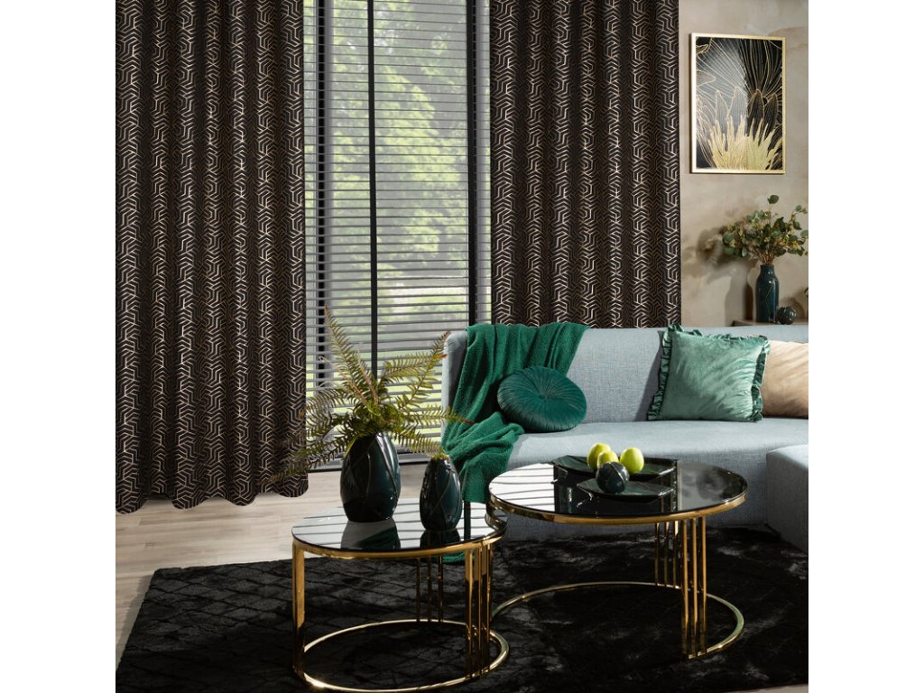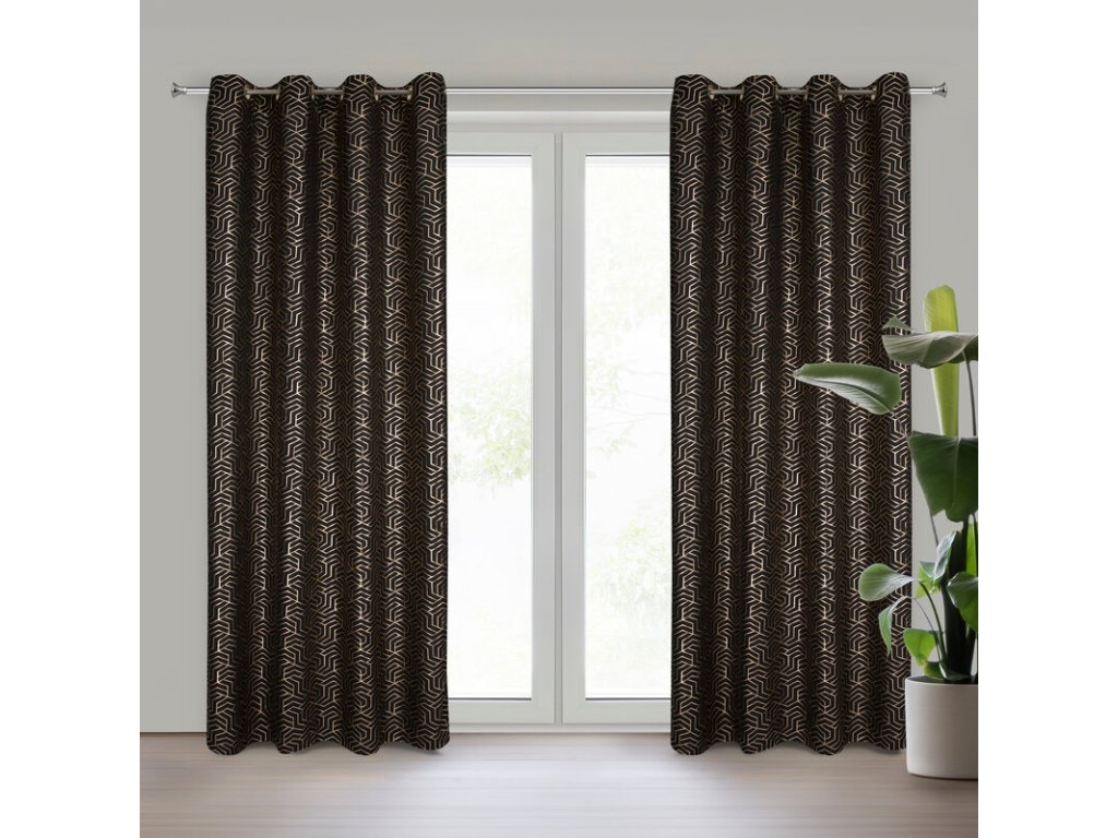 Zasłona gotowa z nadrukiem błyszczącym szerokość: 140 cm, długość: 250 cm, kolor: ČERNÝ, Gramatura: 140 GSM, Skład: 100% poliesterDoplňkové parametry