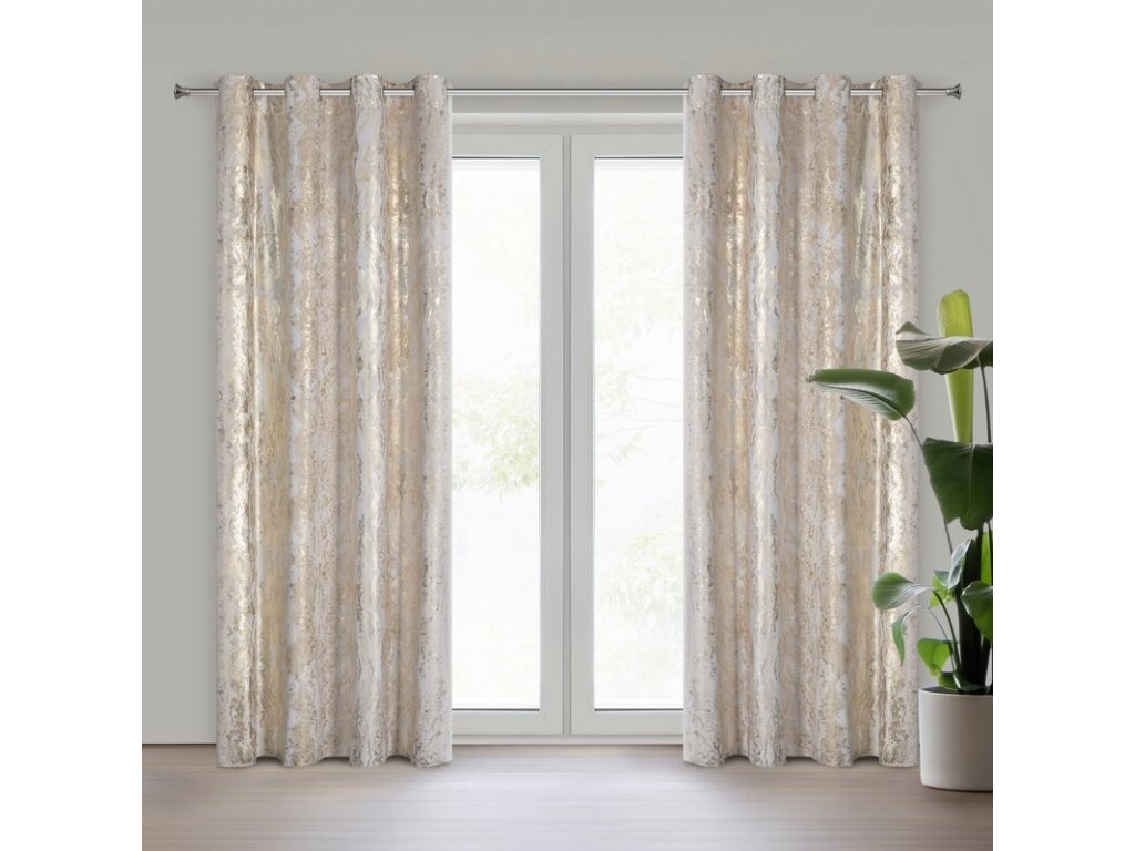 Zasłona welwetowa z błyszczącym nadrukiem. szerokość: 135 cm, długość: 250 cm, kolor: KRÉMOVÝ, Gramatura: 200 GSM, Skład: 100% poliesterDoplňkové parametry