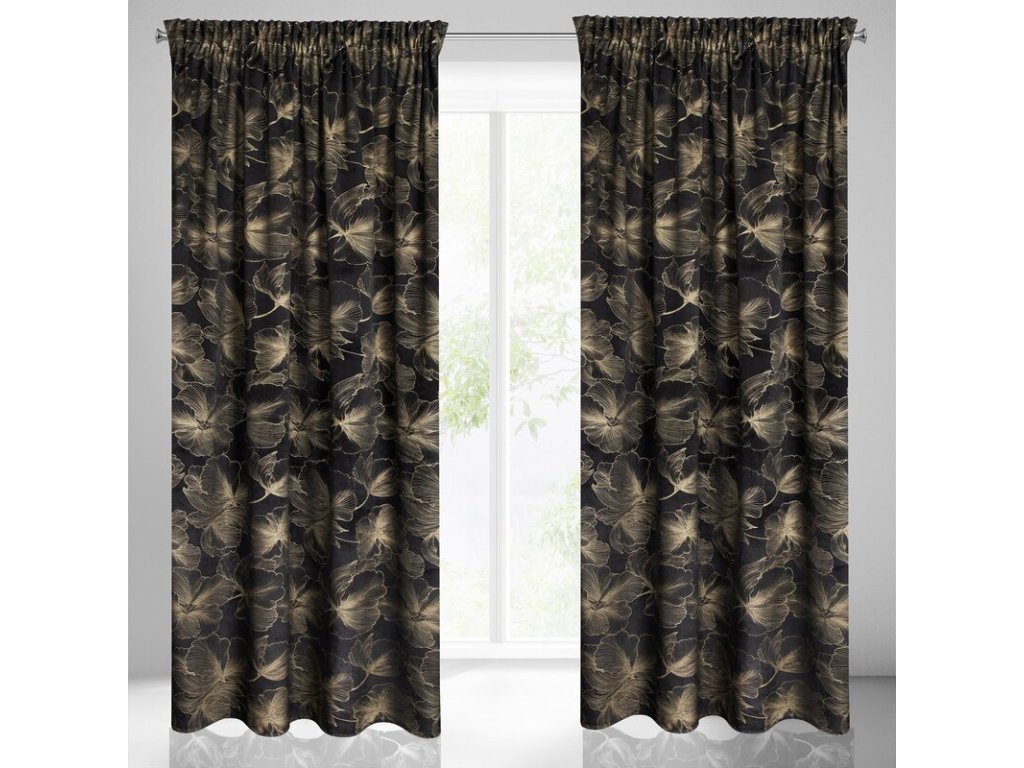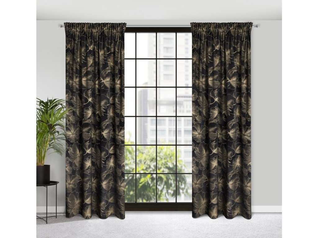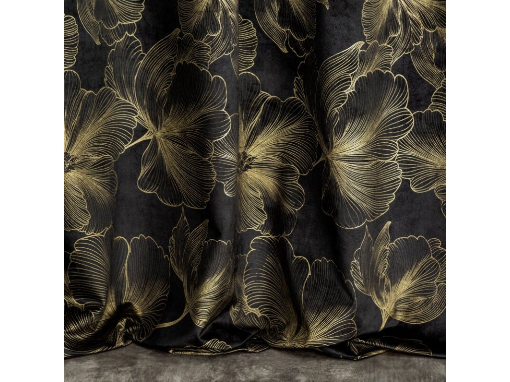 Zasłona welwetowa ze SVĚTLE ZLATÝm nadrukiem szerokość: 140 cm, długość: 300 cm, kolor: ČERNÝ, Gramatura: 200 GSM, Skład: 100% poliesterDoplňkové parametry
