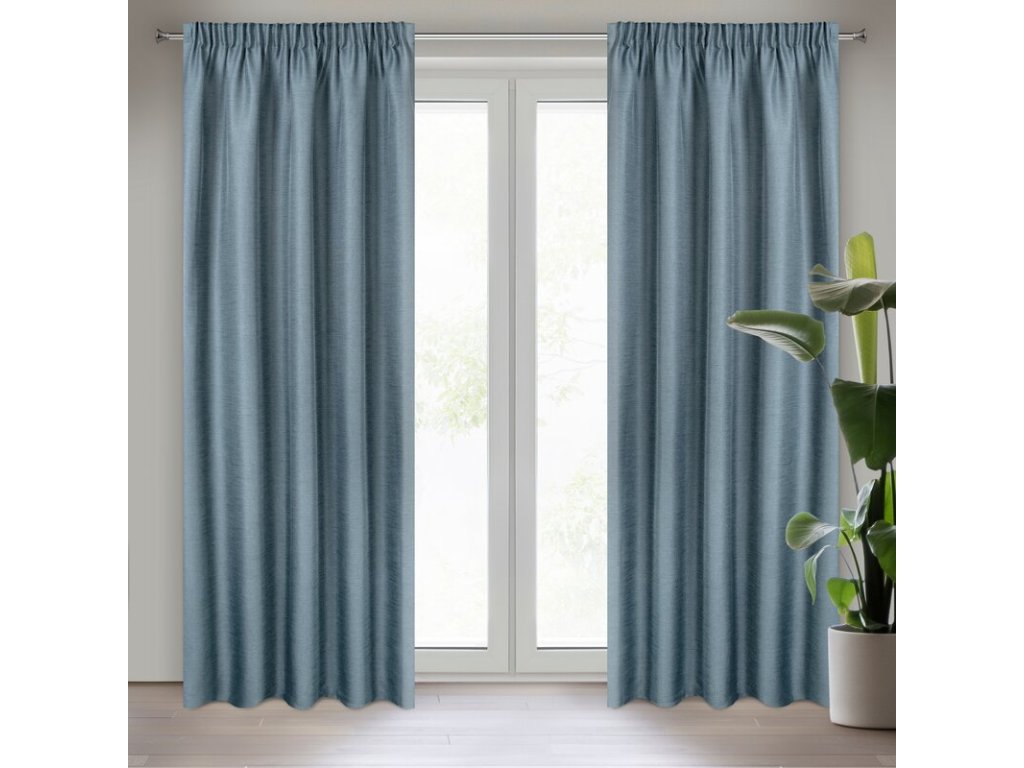 Prosta zasłona jednokolorowa o strukturze przypominającej płótno, łatwo się upina i tworzy miękkie fale. szerokość: 140 cm, długość: 270 cm, kolor: MODRÝ, Gramatura: 187 GSM, Skład: 100% poliesterDoplňkové parametry