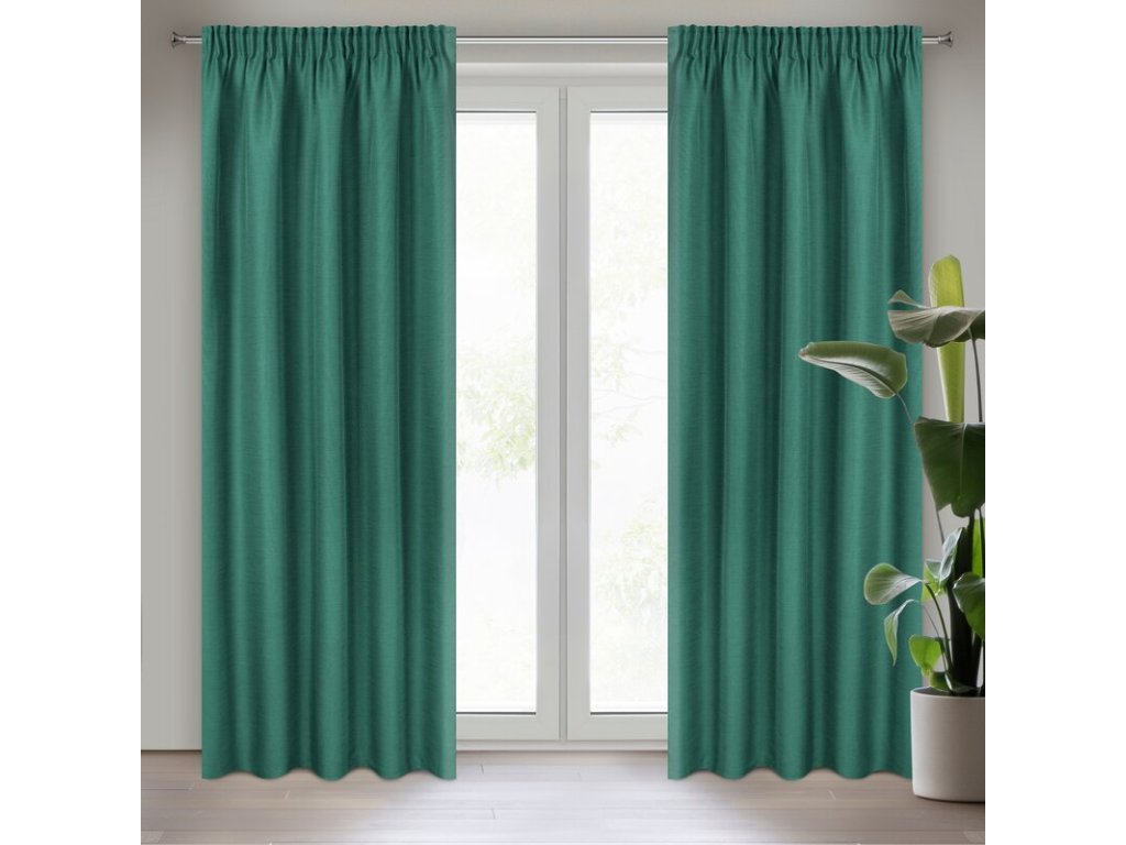 Prosta zasłona jednokolorowa o strukturze przypominającej płótno, łatwo się upina i tworzy miękkie fale. szerokość: 140 cm, długość: 270 cm, kolor: ZELENÝ, Gramatura: 187 GSM, Skład: 100% poliesterDoplňkové parametry
